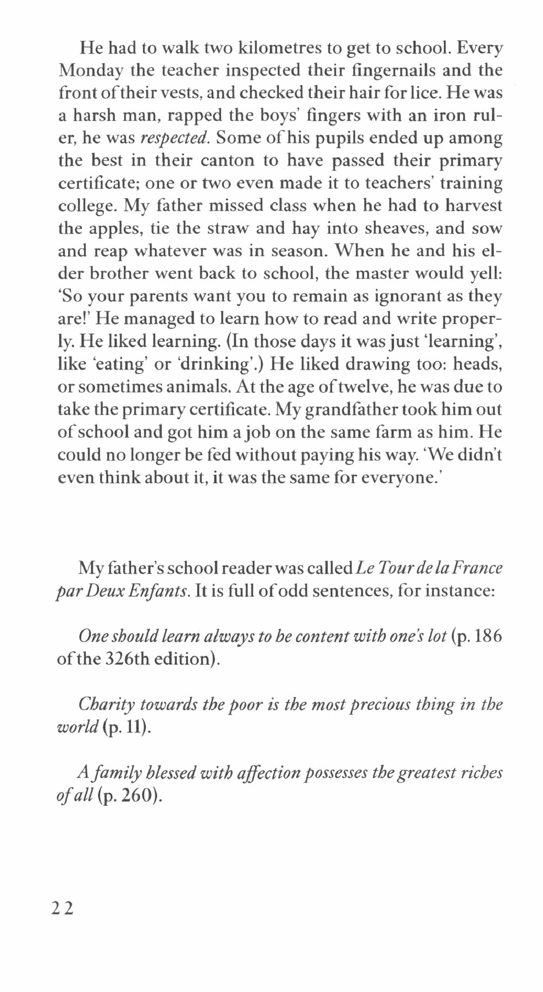 Annie Ernaux’s father died exactly two months after she passed her exams for a teaching certificate. Barely educated and valued since childhood strictly for his labour, Ernaux’s father had grown into a hard, practical man who showed his family little affection. Narrating his slow ascent towards material comfort, Ernaux’s cold observation in A Man’s Place reveals the shame that haunted her father throughout his life. She scrutinizes the importance he attributed to manners and language that came so unnaturally to him as he struggled to provide for his family with a grocery store and cafe in rural France. Over the course of the book, Ernaux grows up to become the uncompromising observer now familiar to the world, while her father matures into old age with a staid appreciation for life as it is and for a daughter he cautiously, even reluctantly admires.