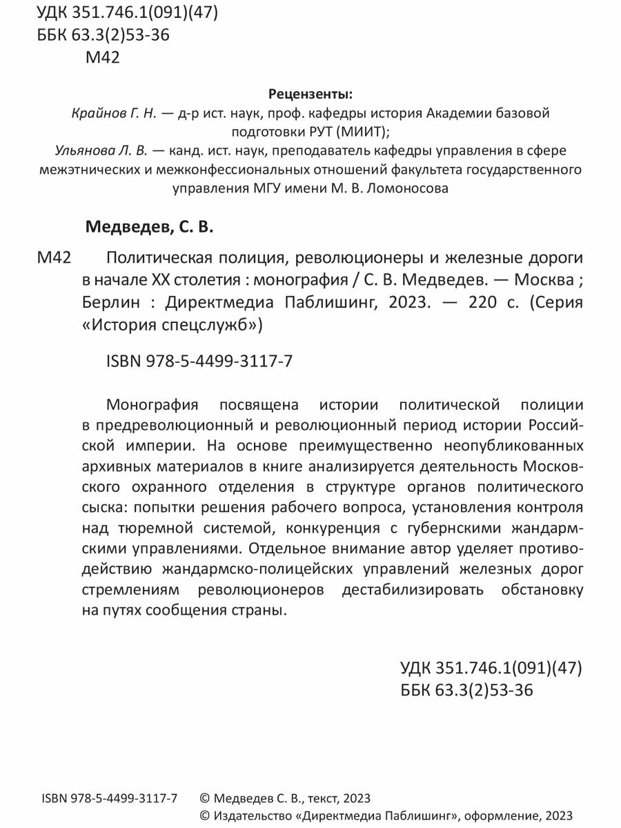 Политическая полиция революционеры и железные дороги в начале XX столетия (Медведев Сергей Владимирович); Директмедиа Паблишинг, 2023
