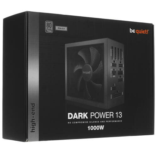 Блок питания be quiet! DARK POWER 13 1000W [BN335] рассчитан на работу в составе мощного игрового компьютера или производительного ПК универсального назначения. Модель, соответствующая форм-фактору ATX, совместима с подавляющим большинством корпусов. Блок питания поддерживает технологии защиты OCP, OPP, OTP, OVP, SCP, SIP и UVP. Соответствие устройства требованиям сертификата 80 PLUS Titanium свидетельствует об очень высоком уровне энергоэффективности. Необходимый уровень качества питания компонентов ПК помогают обеспечивать японские конденсаторы. Блок питания be quiet! DARK POWER 13 1000W [BN335] оснащен 135-миллиметровым вентилятором, вращающимся с частотой до 1800 оборотов в минуту. Скорость вращения регулируется в автоматическом режиме. При любом уровне нагрузки соблюдается оптимальный баланс интенсивности теплоотвода и уровня шума. В комплектацию модели входят кабельные стяжки, набор кабелей, крепежный комплект, планка для задней панели с переключателем и сетевой кабель. Блок питания имеет полностью модульную конструкцию. Вы сможете задействовать только необходимые кабели.