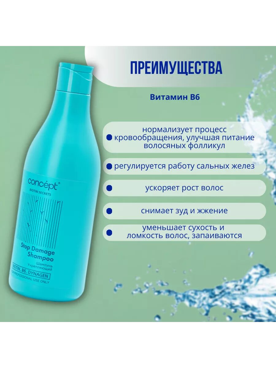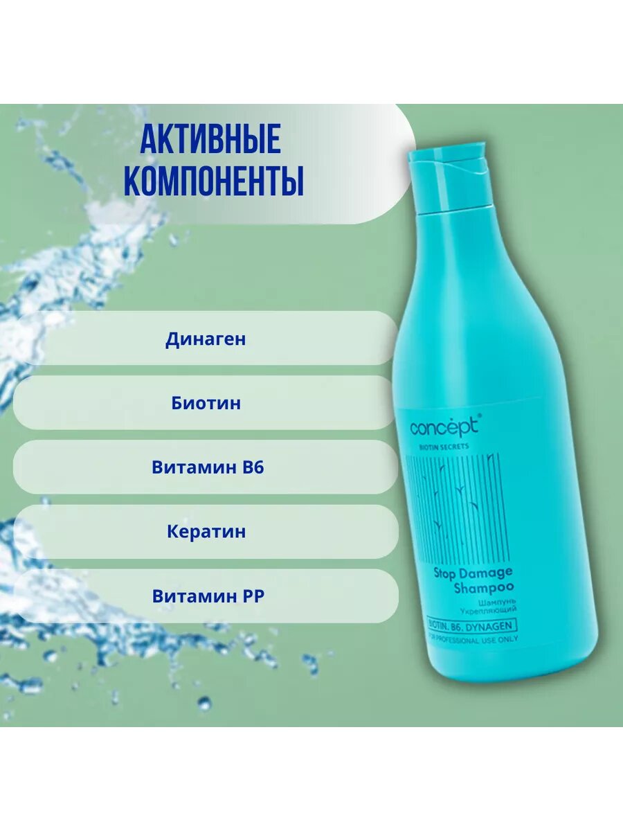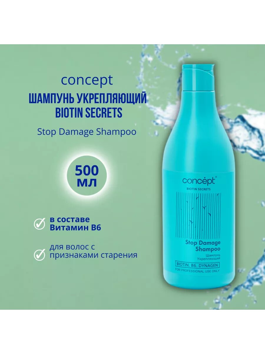 Укрепляющий шампунь Stop Damage Shampoo 500 мл Concept Biotin Secrets