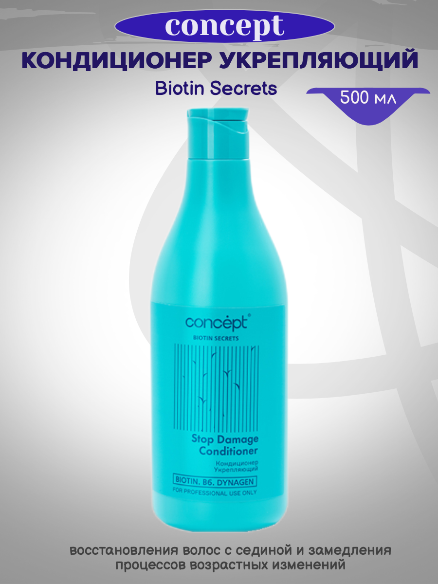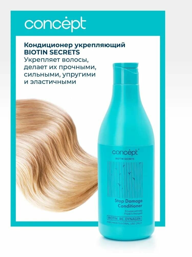 Concept Biotin Secret разработана специально для продления молодости и красоты волос. Все продукты линии работают с ключевыми признаками старения волос, которые появляются даже у молодых женщин от стресса, проблем со здоровьем, УФ-излучения, теплового воздействия или неправильного ухода. Многие женщины замечают, что волосы теряют эластичность, упругость и блеск, становятся ломкими или седеют. Комплексное воздействие активов Biotin Secrets нейтрализует действие ключевых возрастных изменений, затормаживает процессы старения и восстанавливает структуру волос.