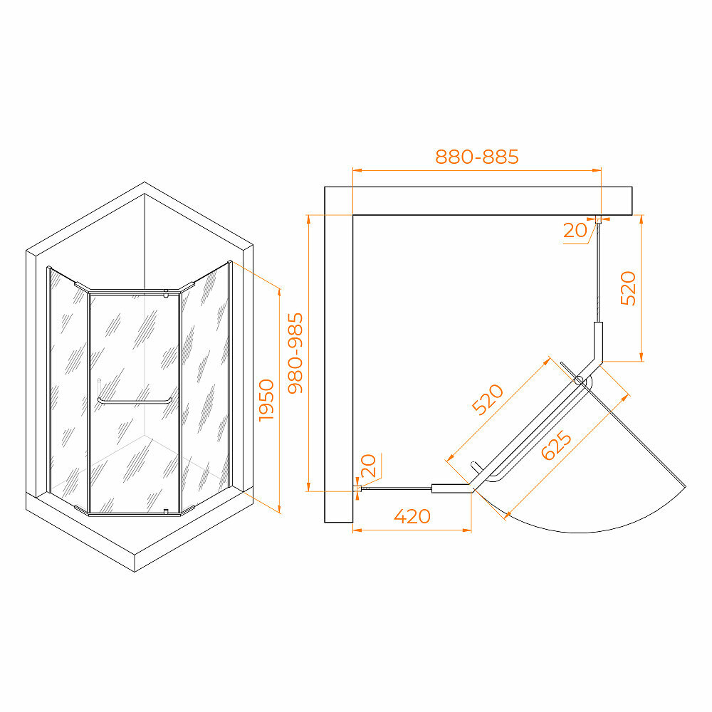 Душевой уголок RGW Passage пятиугольной формой размером 98 см на 88 см высотой 195 см создаст значительное пространство внутри, для вашего комфорта. Цвет профиля RGW Passage - черный, это прекрасный вариант для современного интерьера. Конструкция дверей 35089190-14 распашная, состоящая из 1 секции, это наиболее распространённая и надежная модель, однако стоит обязательно учитывать ширину открывания самой двери при монтаже других предметов сантехники. Стекло у душевого уголка RGW 35089190-14 представлено в прозрачном исполнении, толщиной 6 мм, отлично будет гармонировать с любым дизайном интерьера ванной. Универсальность ориентации RGW Passage позволяет не задумываться о, том в какой именно угол нужно устанавливать, и даже при изменении положения других элементов сантехники, можно без проблем изменить ориентацию. RGW Passage 35089190-14 спроектирован дизайнерам с четким соблюдением всех серьезных элементов современного стиля. Наличие покрытия анти-капля надежно защитит стекло от налета, подтёков и других загрязнений, а так же сохранит чистоту стекла и эстетичный внешний вид.