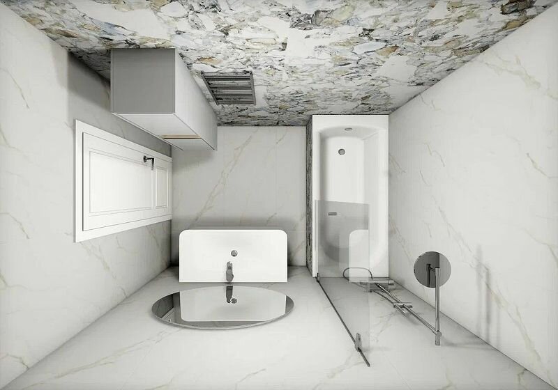 Подходит для облицовки полов и стен, хорошо гармонируя со светлой пастельной и черно-белой гаммой, теплыми древесными оттенками.