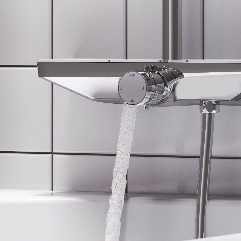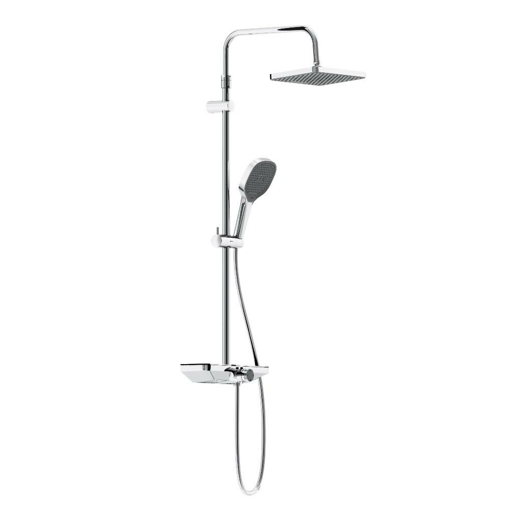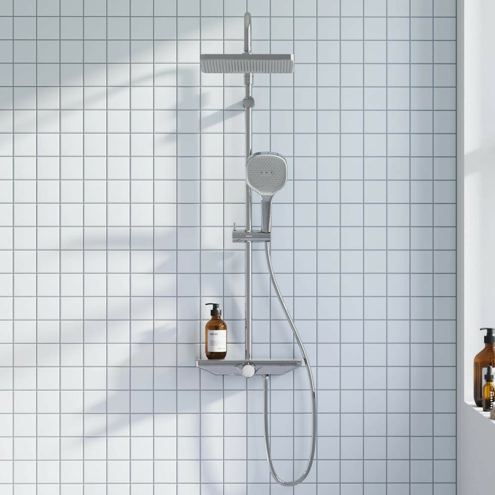 Чистые геометричные линии душевой системы Merkur идеально впишутся в интерьер современной ванной комнаты в скандинавском стиле. Несмотря на минималистичный дизайн, душевые системы этой серии отличаются широким функционалом и необычайной эргономичностью. Продуманные детали: корпус смесителя выполнен в виде удобной полочки из закаленного стекла, на которой можно разместить необходимые под рукой вещи.Невидимый излив совмещает в себе эстетику и удобство. Простое и интуитивное управление: регулируйте температуру воды и переключайте потоки между изливом, ручной и верхней лейкой плавным поворотом двухуровневой ручки.Настоящее SPA прямо у вас дома: увеличенный размер тропической лейки с регулируемым углом наклона (220 мм) и 3 режима ручного душа сделают ваши ежедневные ритуалы незабываемыми. Благодаря телескопической штанге с диапазоном регулировки в 400 мм водные процедуры будут одинаково комфортны абсолютно для всех членов семьи.
