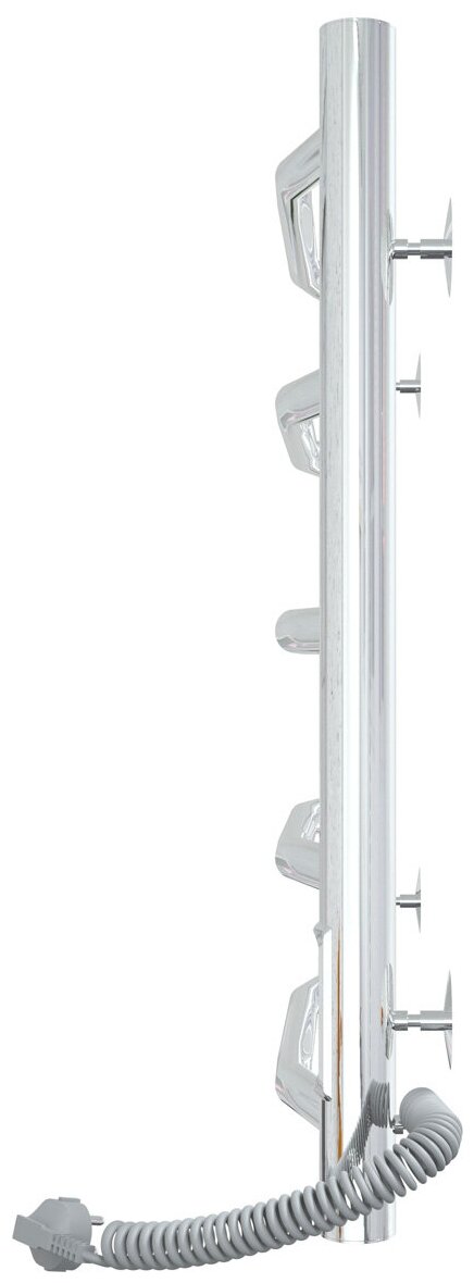 Полотенцесушитель электрический Laris Виктория П5 400х500 Э с терморегулятором и таймером имеет современный дизайн и прочную конструкцию. Материал сталь нержавеющая AISI304. Напряжение питания 220 В. Частота тока 50 Гц. Температура поверхности изделия плюс минус 5 к 50. Размещение терморегулятора снизу на стойке (доступно скрытое подключение). Проверка на пробой изоляции производится напряжением в 1500В. Для скрытого подключения вам понадобиться «Модуль скрытого подключения». Модуль скрытого подключения не является частью комплектации полотенцесушителя **(приобретается отдельно)**. Размещение шнура справа. Диаметр и толщина: стойка O32, толщина 1,5 мм; перемычка O20, толщина 1,2 мм. Отступ от стены - 35 мм. Расстояние между центрами крепления 400 мм. Теплоноситель - греющий кабель. Площадь обогреваемого помещения 4 м2. Время нагрева до 10 минут. Оснащение: нагревательный кабель, световой индикатор. Цвет хром.