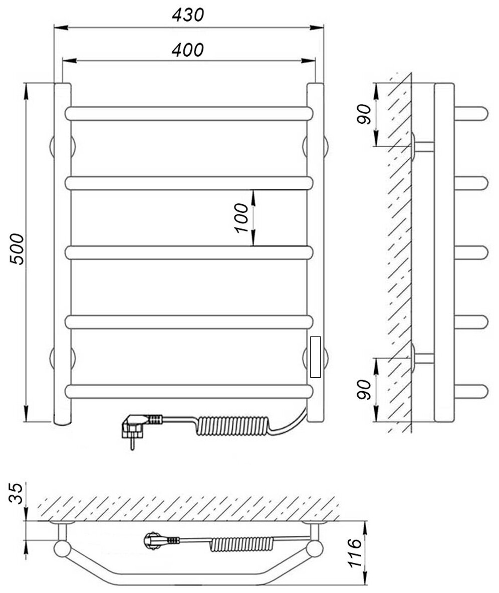 | ВКоробке | Полотенцесушитель - 1 шт. Терморегулятор - 1 шт. Комплект креплений - 1 шт. Электрический кабель - 1 шт. Инструкция - 1 шт. |
