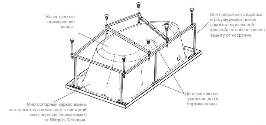 Комплектация: в состав монтажного комплекта входит каркас, комплект креплений к стене, комплект креплений фронтальной панели, система слив-перелив полуавтомат.