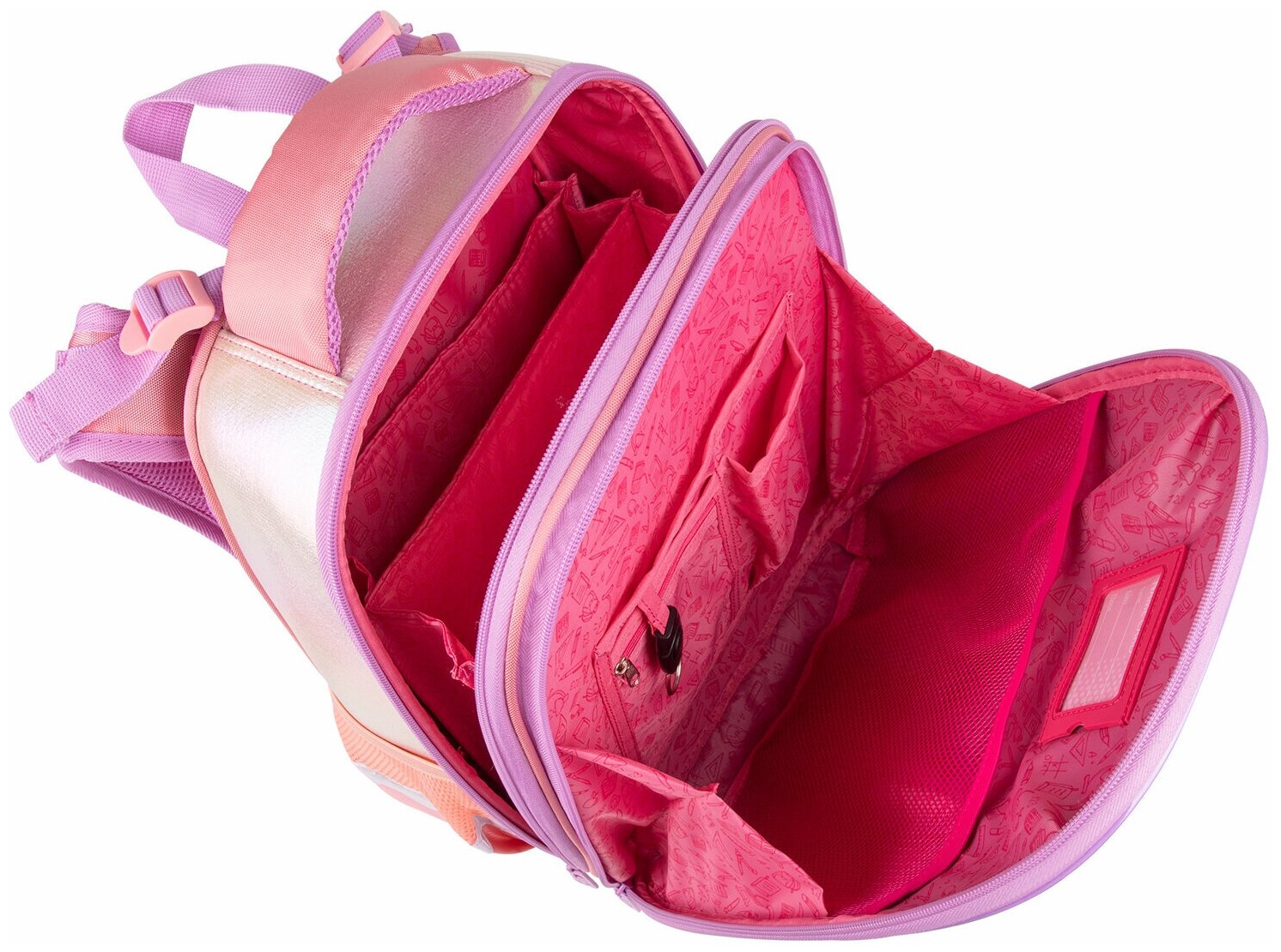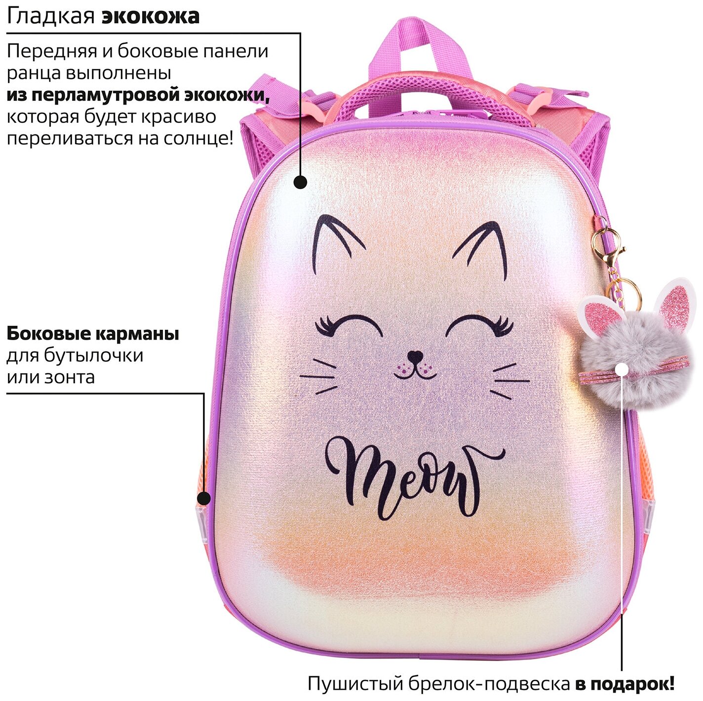 Ранец Brauberg SHINY Cheerful анатомическая вентилируемая формоустойчивая спинка 2 отделения персиковый/сиреневый (270697) Ранец Shiny 2 отделения Cheerful 36х28х14 см