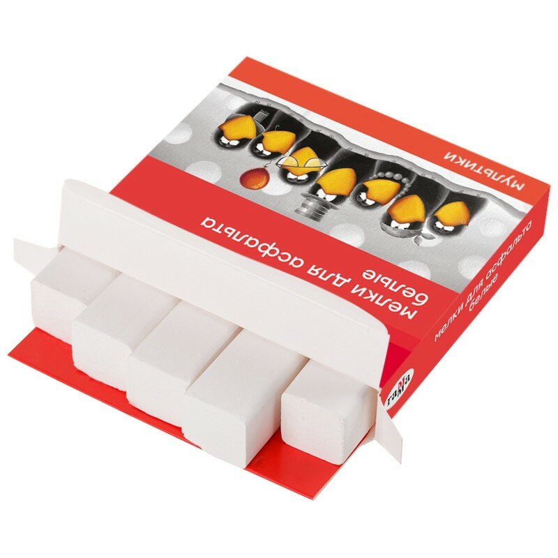 Мелки для асфальта белые "Мультики" 5 штук (2304192) ГАММА