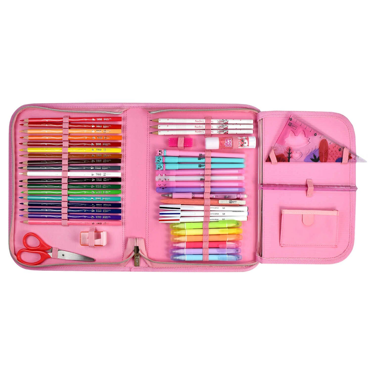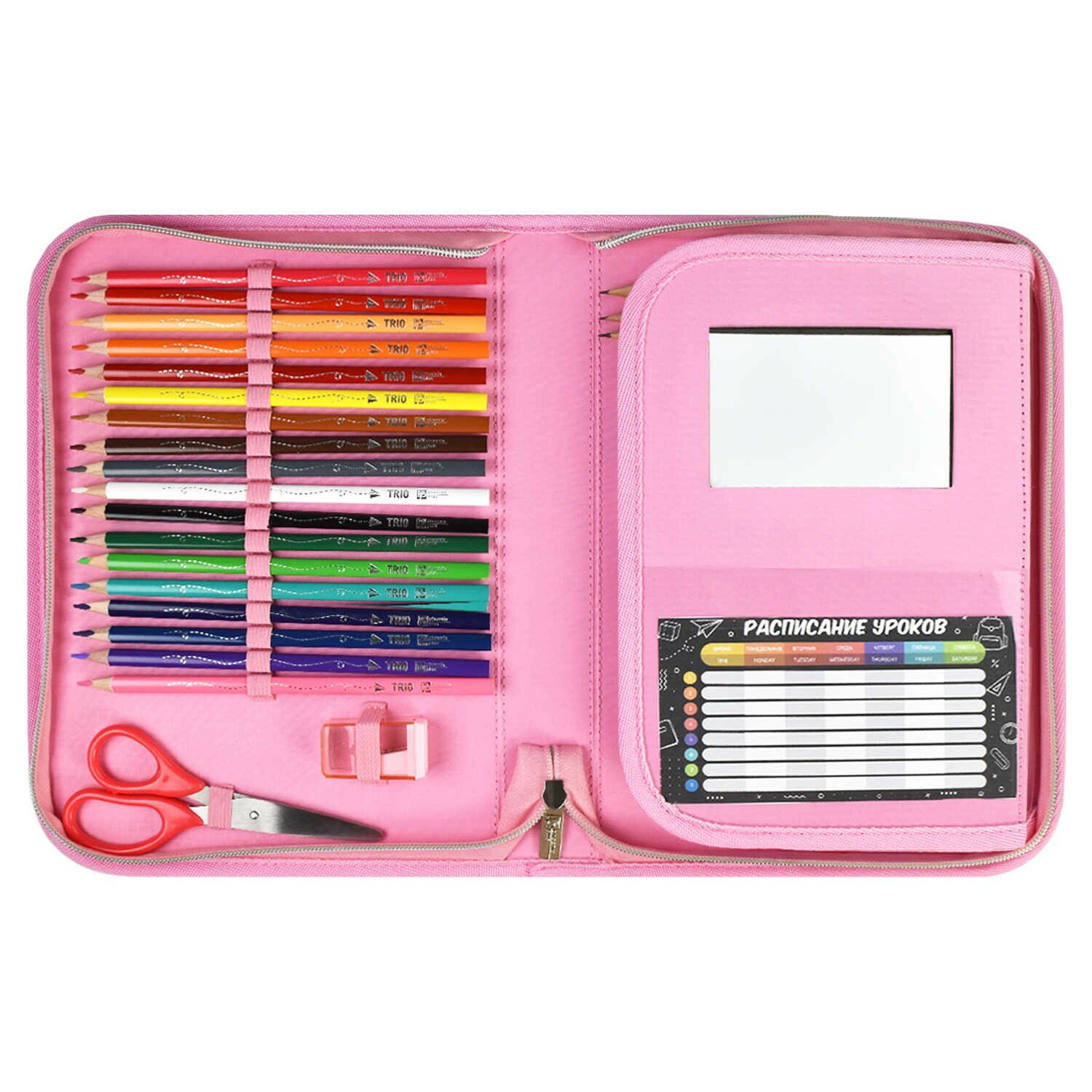 Пенал-органайзер XXL для канцелярских принадлежностей школьный (без наполнения, 28*20*4,5 см, глиттерная бумага, искусственная кожа, ПВХ, молния, полноцветная печать по ПВХ, ПЭТ-пакет).