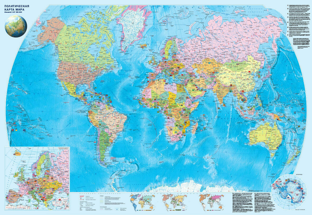 Эта обновлённая двусторонняя складная карта имеет обрезной формат 990х680 мм. В сложенном виде, при размерах 247,5 х 113,3 мм, она легко умещается в кармане. На одной стороне листа представлена красочная физическая карта мира масштаба 1:37 500 000, дополненная картами Арктики и Антарктиды, на другой стороне - политическая карта мира масштаба 1:37 500 000 с картой-врезкой Европы в масштабе 1:20 000 000. Каждое из государств мира дано со своим официальным флагом. Россия представлена в новых границах: с Донецкой и Луганской народными республиками, Запорожской и Херсонской областями, Республикой Крым и Севастополем. На дополнительных картах приведены также основные международные организации.