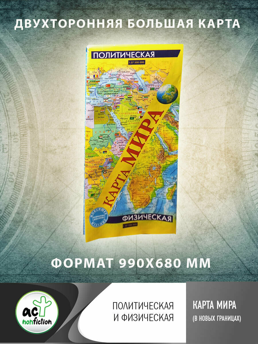 Карта мира (в новых границах): Политическая. Масштаб (1:37 500 000). Физическая. Масштаб (1:37 500 000) (без автора); ИЗДАТЕЛЬСТВО "АСТ", 2023