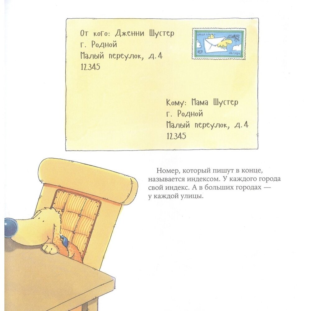 Все книги построены по принципу «один день из жизни »: герои историй, дети, приходят в гости на работу к своим взрослым знакомым. В этой книге девочка Дженни вместе со своей подругой Марией знакомится с важной профессией почтальона. Вы узнаете, какой путь проходит письмо, прежде чем попадёт к адресату, для чего на конверты клеят марки, как происходит сортировка посылок, в чём их везут из почтового отделения, как почтальон разносит письма и многое другое!