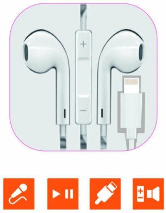 Эргономичные проводные наушники-вкладыши с чистым громким звучанием и шумоподавлением. Оснащены универсальным разъемом Lightning и встроенным микрофоном, что позволяет использовать наушники в качестве гарнитуры, оставляя руки свободными, отвечать на звонки и слушать музыку.