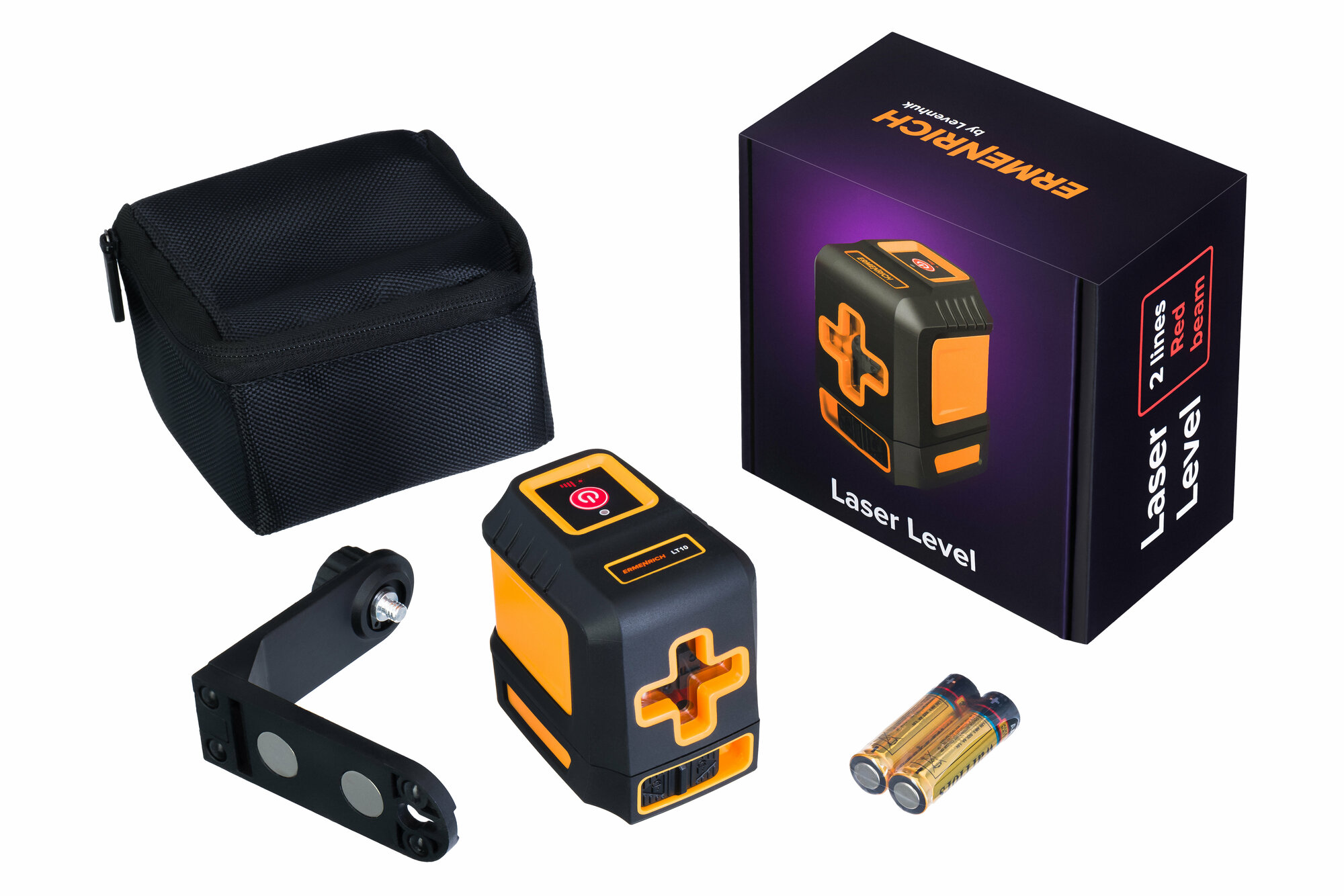 Красный лазерный уровень Ermenrich выстраивает две линии – горизонтальную и вертикальную. Он поможет качественно выполнить разметку и выравнивание при проведении плиточных, малярных, гипсокартонных и других работ. Прибор может находиться на расстоянии до 15 метров от поверхности, на которую проецируются лазерные плоскости. Угол развертки составляет 130 градусов. Система компенсации обеспечивает самовыравнивание лучей, что гарантирует высокую точность работы.