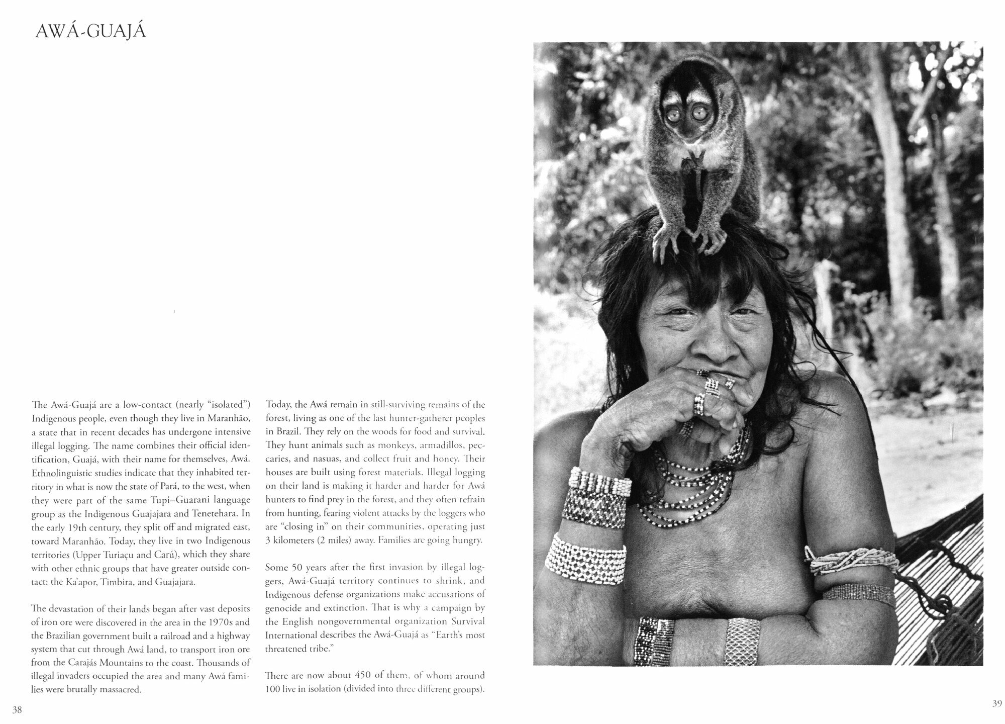 Sebastiao Salgado traveled the Brazilian Amazon and photographed the unparalleled beauty of this extraordinary region for six years: the forest, the rivers, the mountains, the people who live there—an irreplaceable treasure of humanity. In the book’s foreword Salgado writes: “For me, it is the last frontier, a mysterious universe of its own, where the immense power of nature can be felt as nowhere else on earth. Here is a forest stretching to infinity that contains one-tenth of all living plant and animal species, the world’s largest single natural laboratory.” Salgado visited a dozen indigenous tribes that exist in small communities scattered across the largest tropical rainforest in the world. He documented the daily life of the Yanomami, the Ashaninka, the Yawanawa, the Suruwaha, the Zo’e, the Kuikuro, the Waura, the Kamayura, the Korubo, the Marubo, the Awa, and the Macuxi—their warm family bonds, their hunting and fishing, the manner in which they prepare and share meals, their marvelous talent for painting their faces and bodies, the significance of their shamans, and their dances and rituals. Sebastiao Salgado has dedicated this book to the indigenous peoples of Brazil’s Amazon region: “My wish, with all my heart, with all my energy, with all the passion I possess, is that in 50 years’ time this book will not resemble a record of a lost world. Amazonia must live on.”
