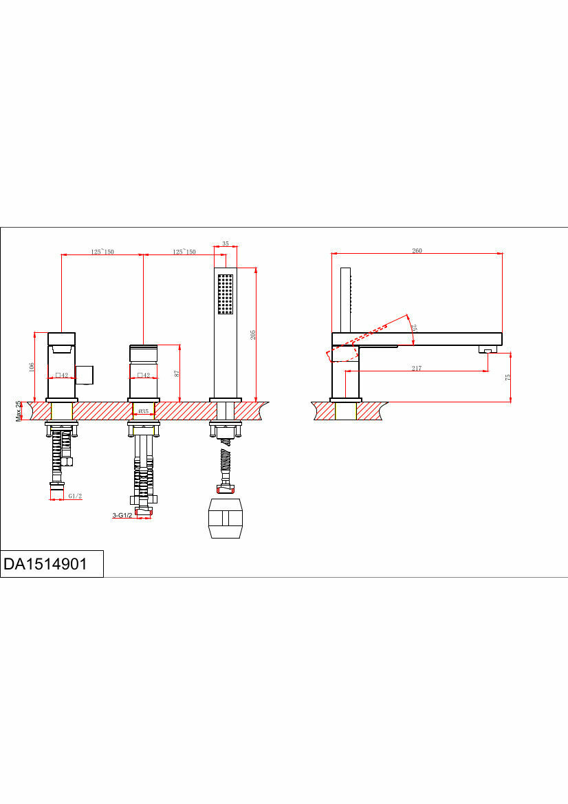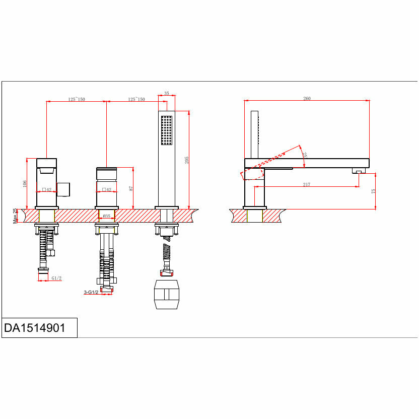 Смеситель на борт ванны D&K Bayern.Liszt DA1514901 хром