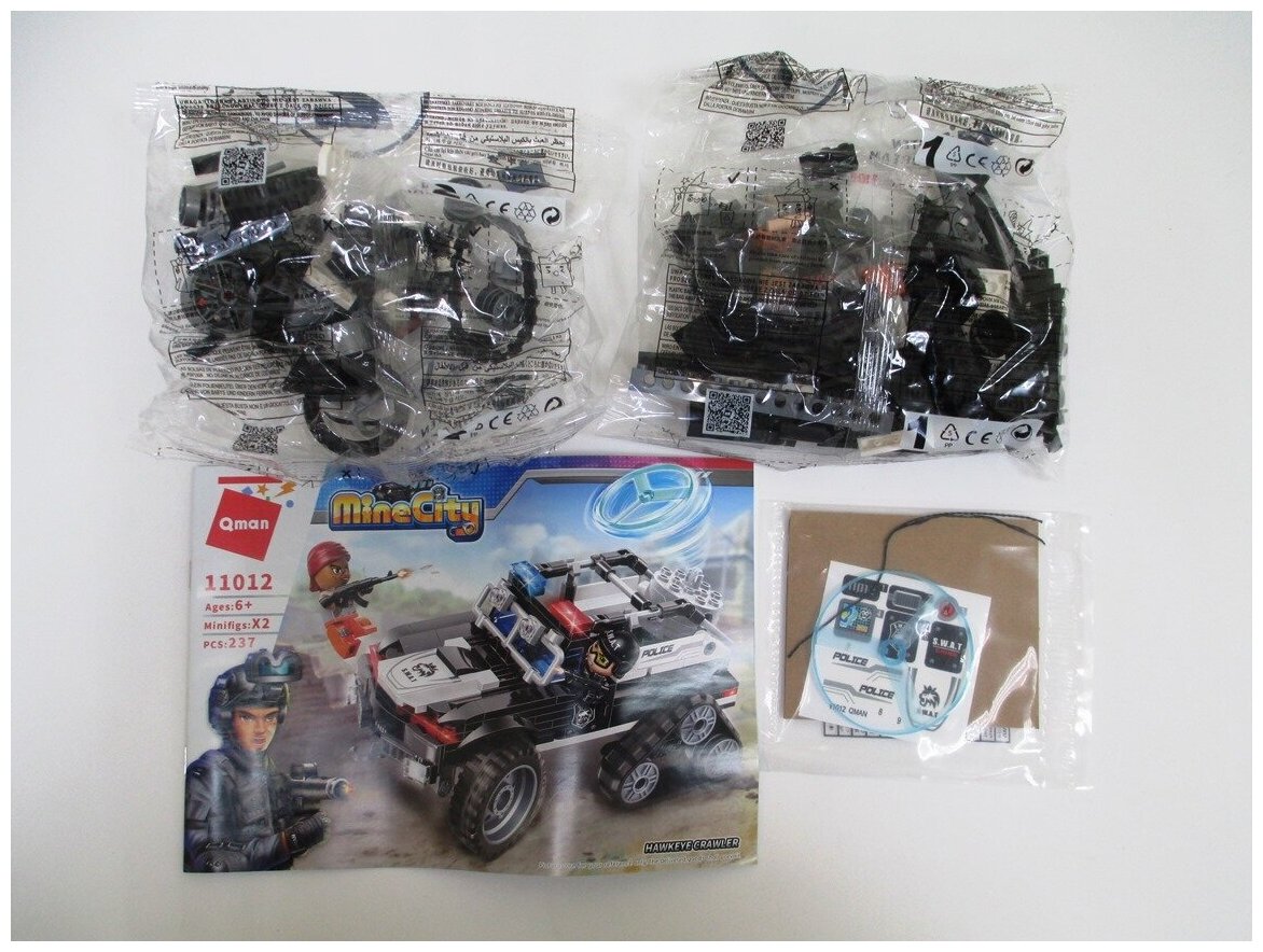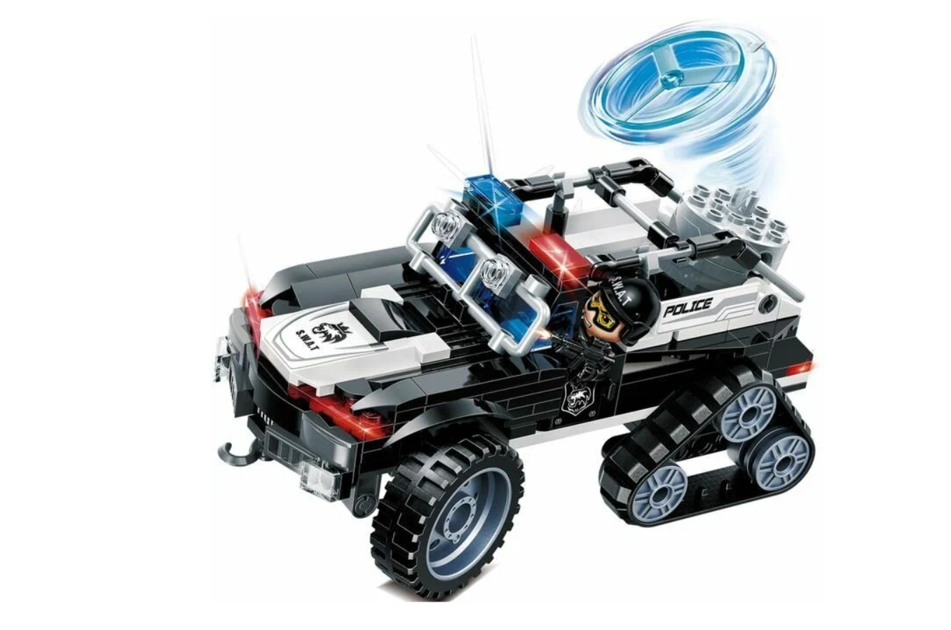 Из пластиковых деталей, входящих в данный набор, маленький любознайка сможет сконструировать полицейский внедорожник и устроить погоню за преступником с автоматом.