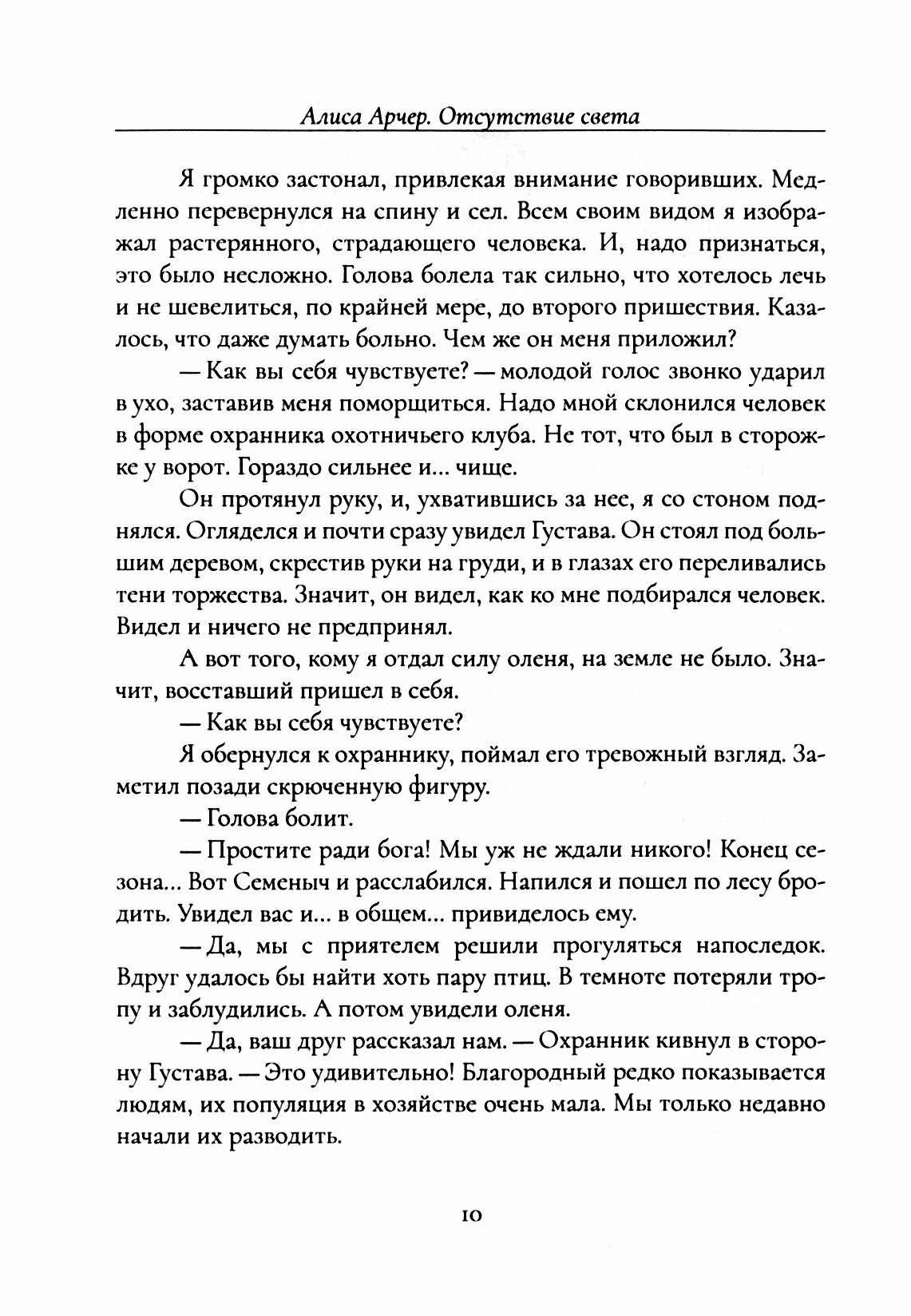 Купила «Отсутствие света», о чём жалею. Прочитала за один вечер. Книга отстой. Раньше такие "боевички" выпускали сериями на дешёвой газетной бумаге под аляповатыми обложками в издательствах Лениздат, Центрполиграф, Армада и т.п. Тут обложка стильная, бумага белая. Шрифт не очень удобный, но читать можно.