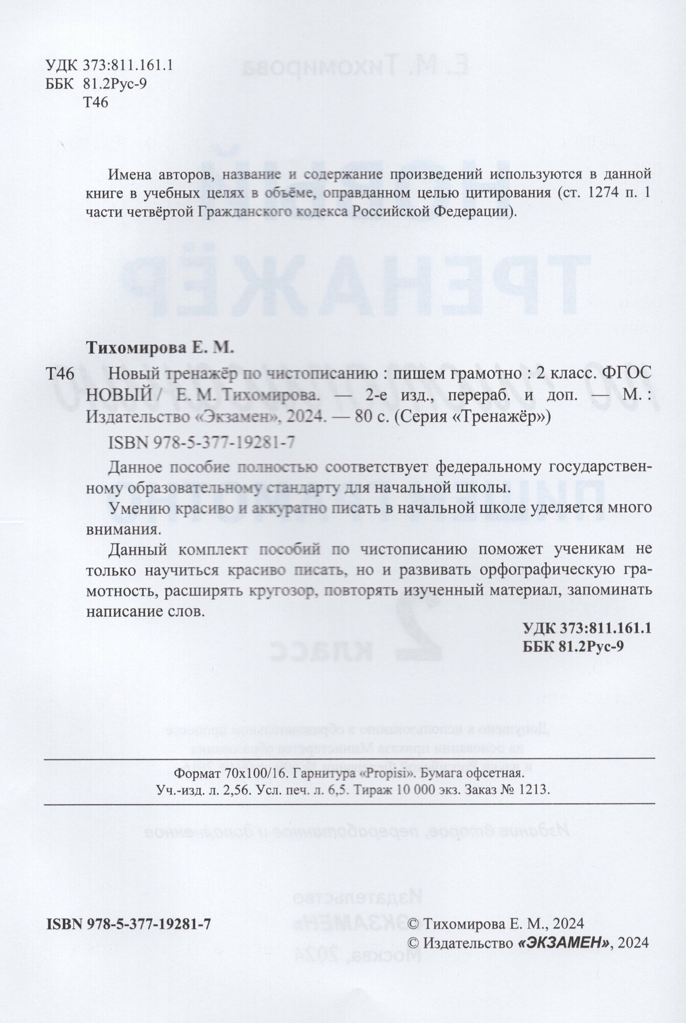 Новый тренажер по чистописанию. Пишем грамотно. 2 класс (Елена Михайловна Тихомирова); Экзамен, 2025