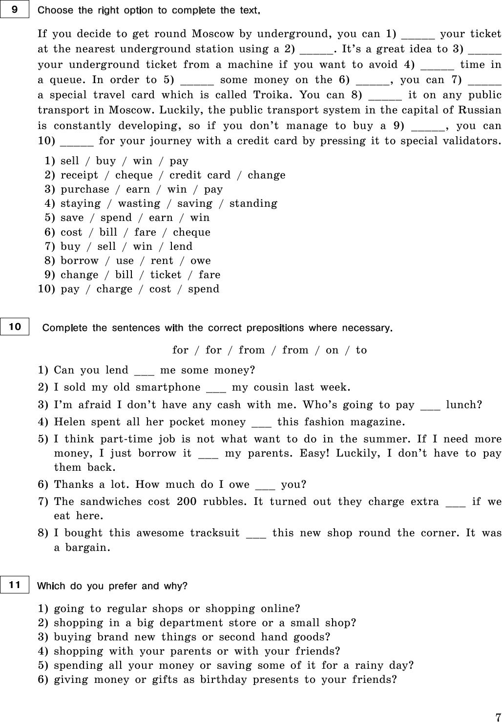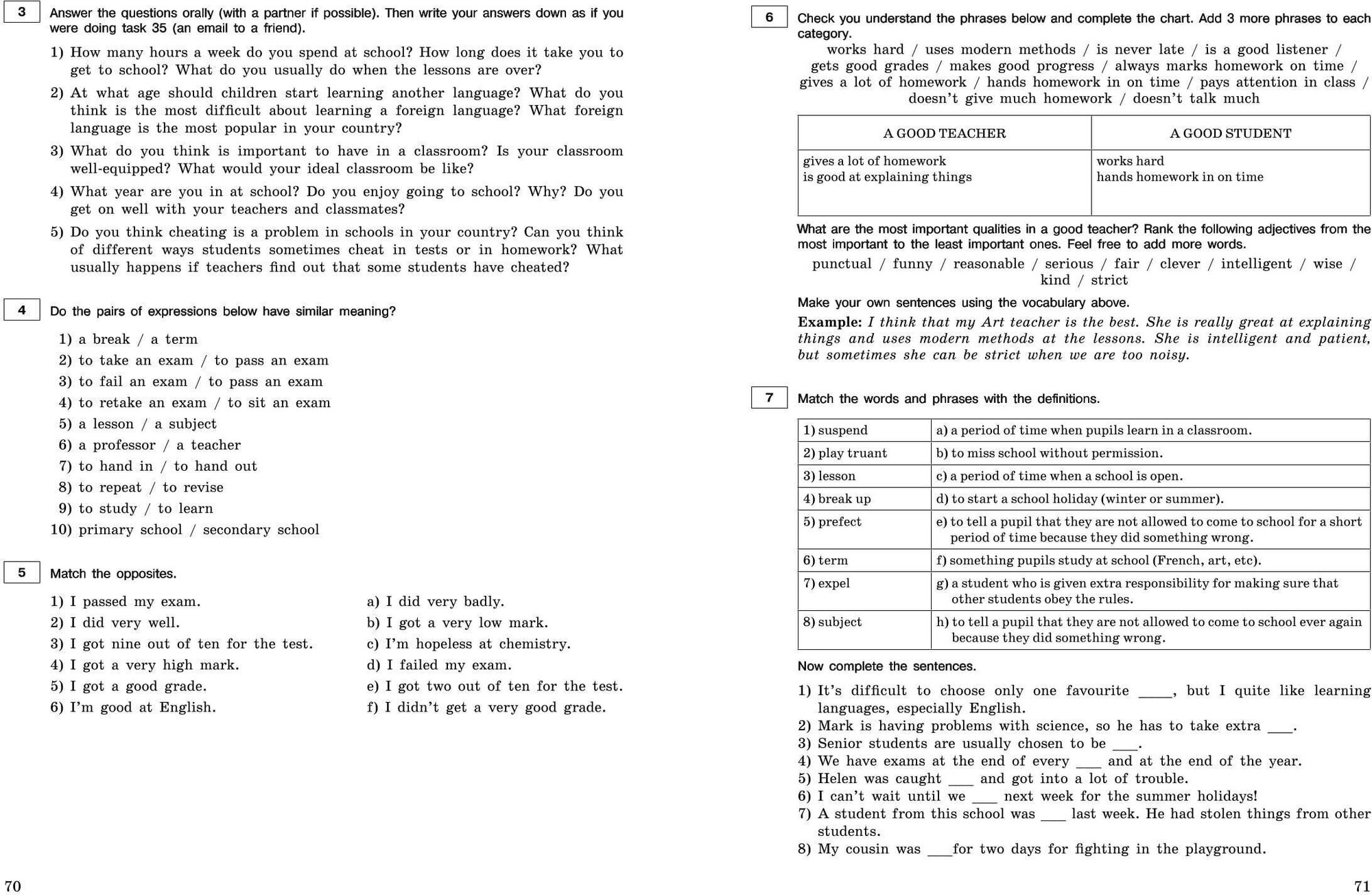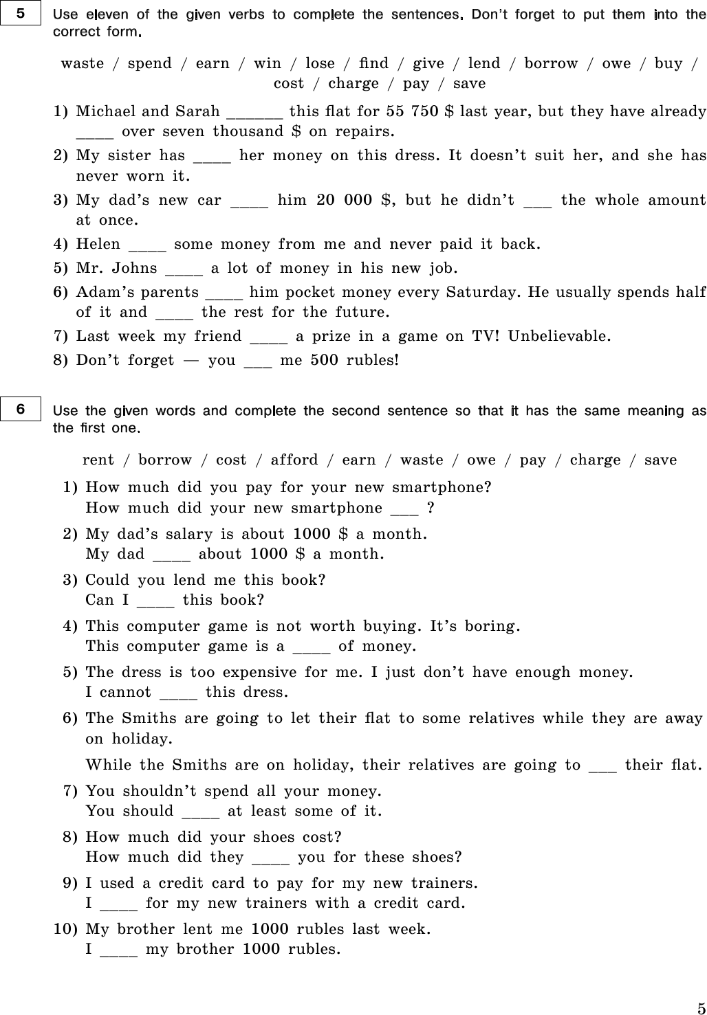 опорные фразы для выполнения заданий;