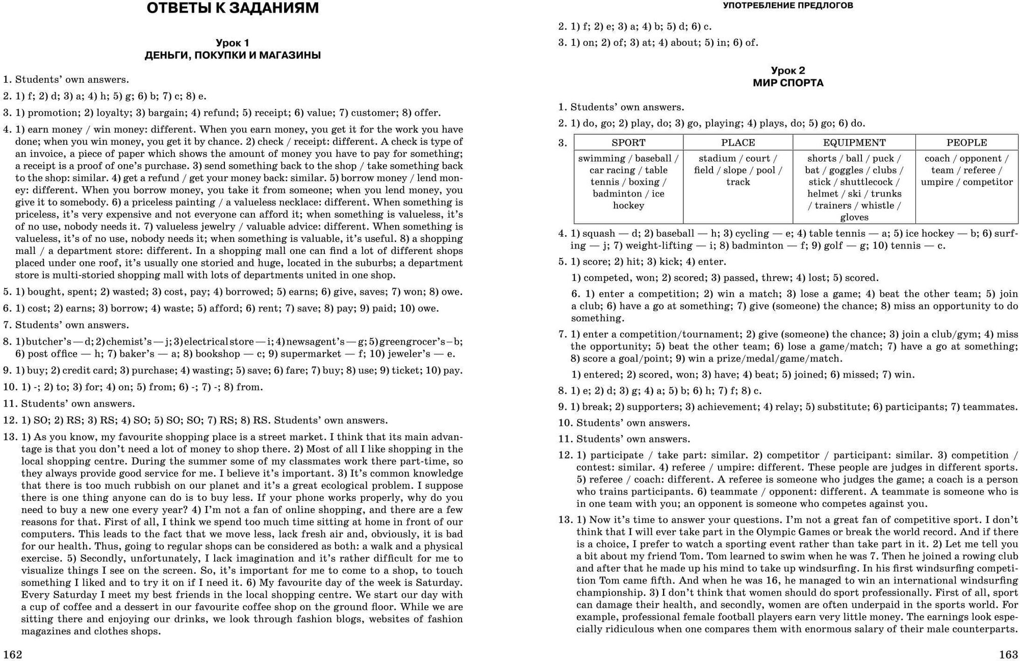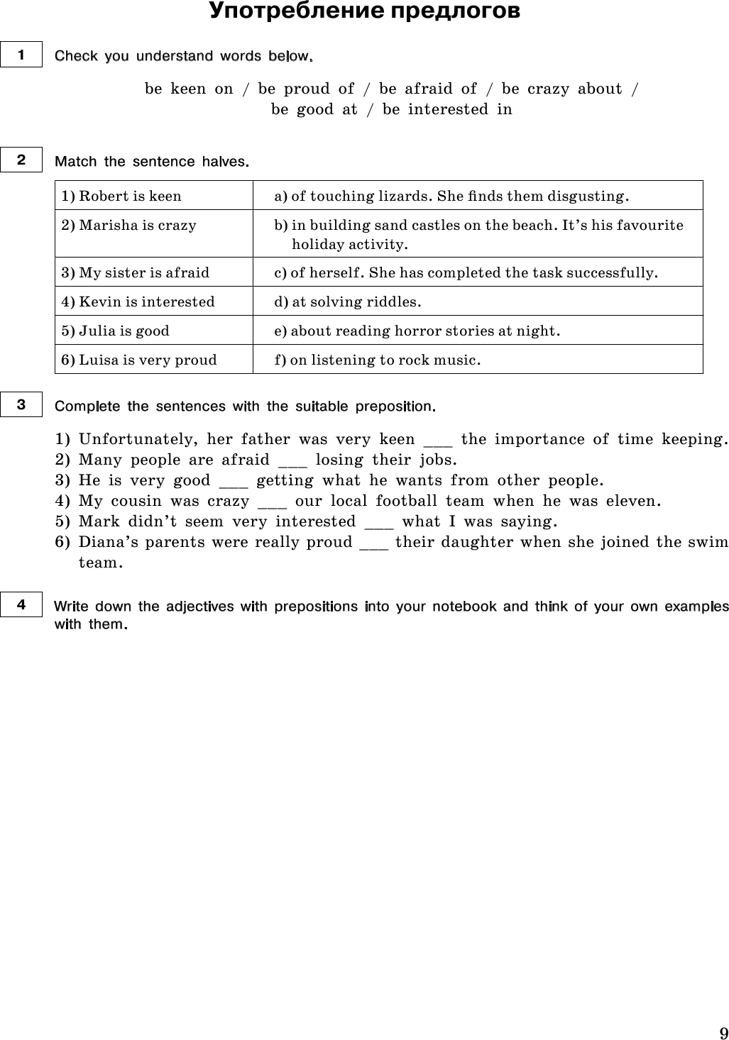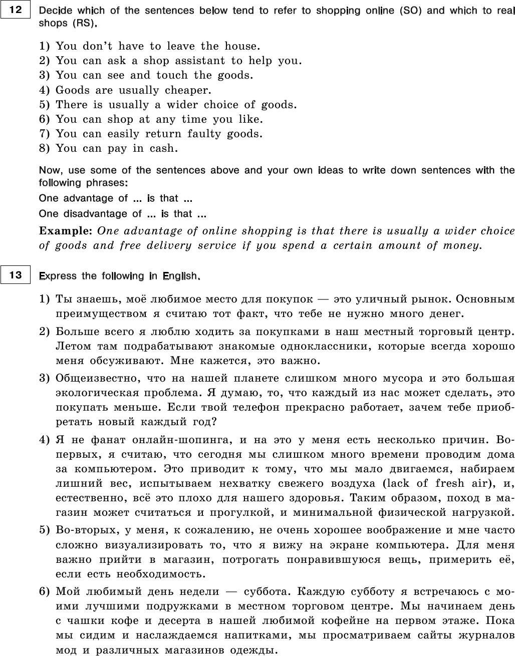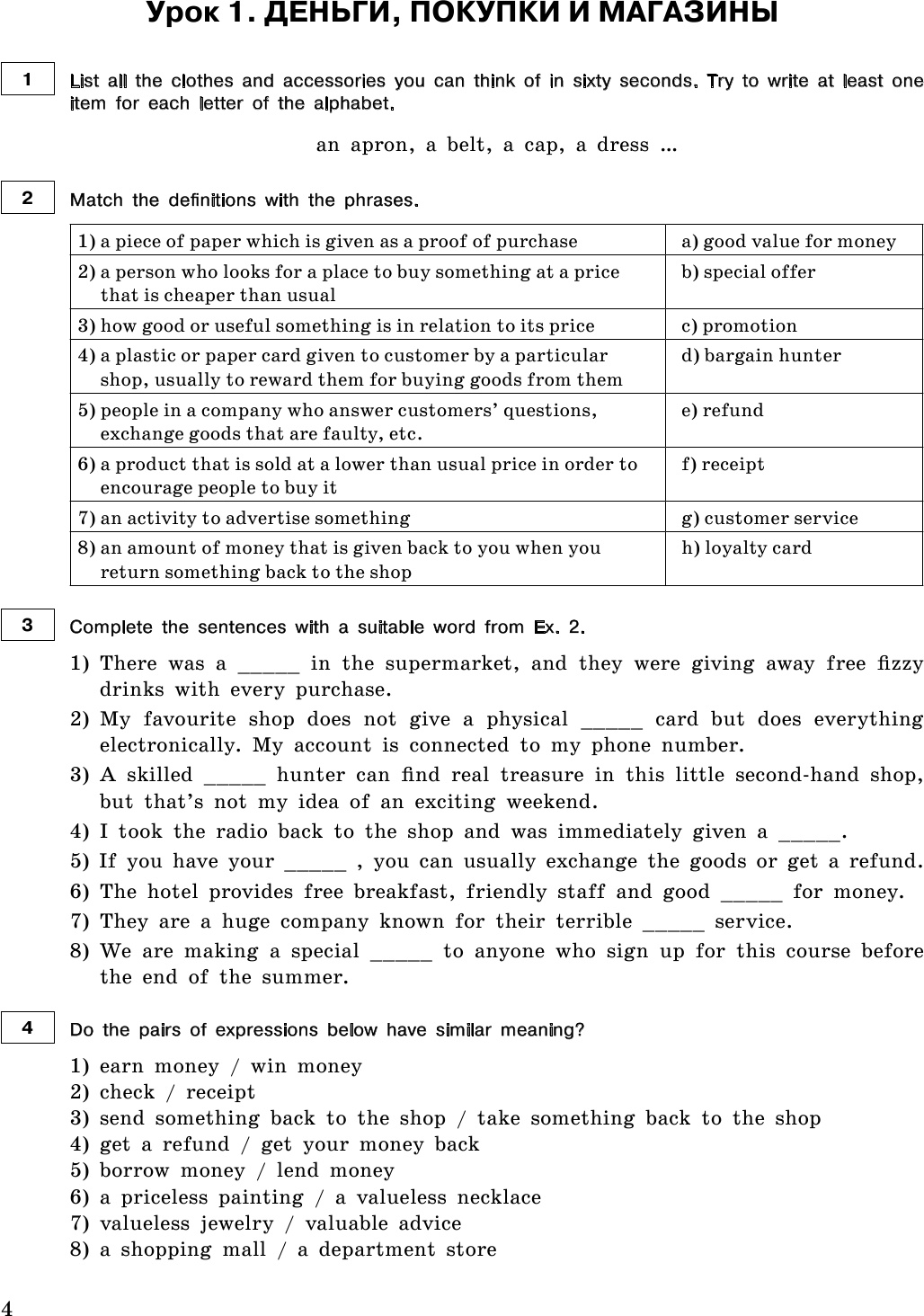 опорные фразы для выполнения заданий;
