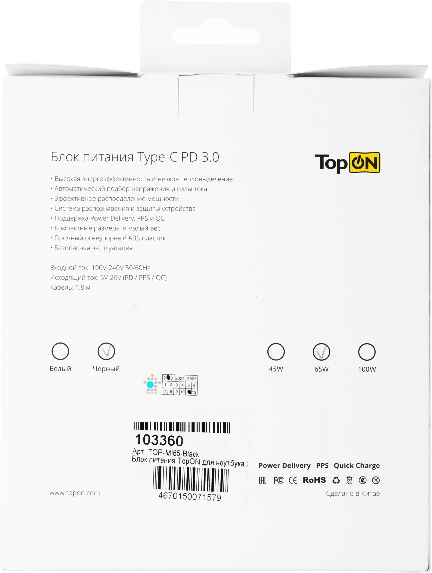| Код производителя | TOP-MI65-Black |
