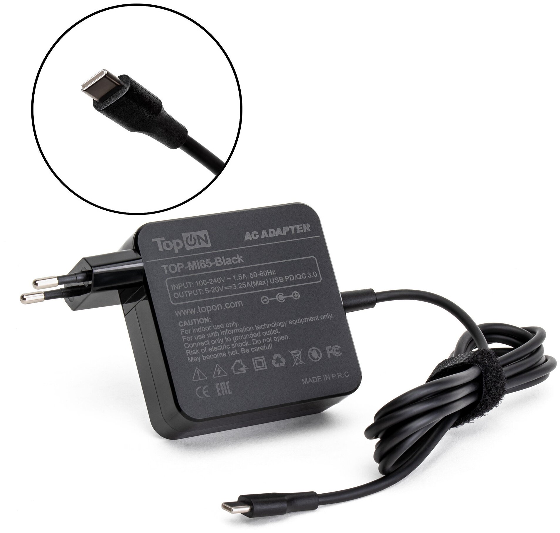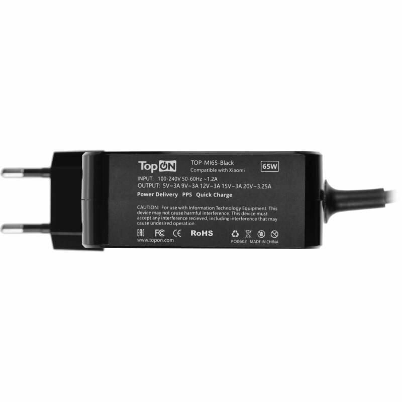 Адаптер питания TOPON TOP-MI65, 5 - 20.3 В, 3.25A, 65Вт, универсальный, черный [top-mi65-black]