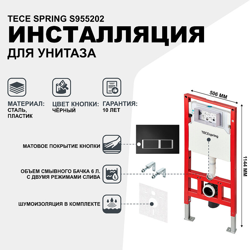 На сегодняшний день товар «Инсталляция Tece Spring S955202 для унитаза с Черной матовой клавишей смыва» можно купить с кешбеком в 1 магазине: Яндекс.Маркет