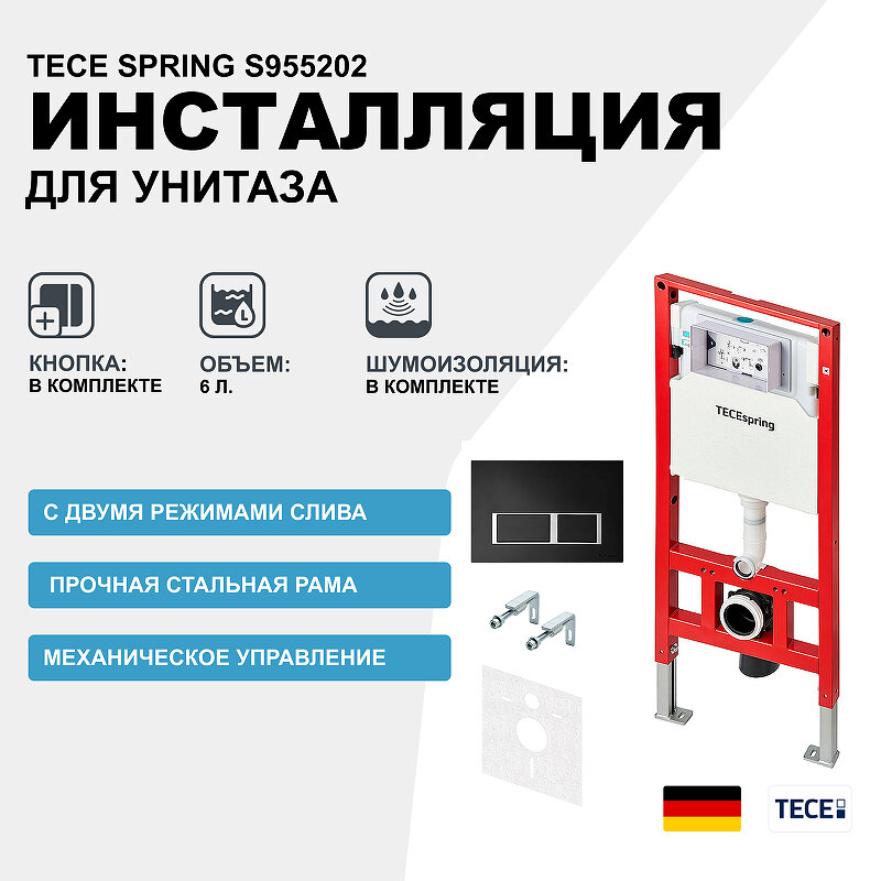 Инсталляция Tece Spring S955202 для унитаза с Черной матовой клавишей смыва