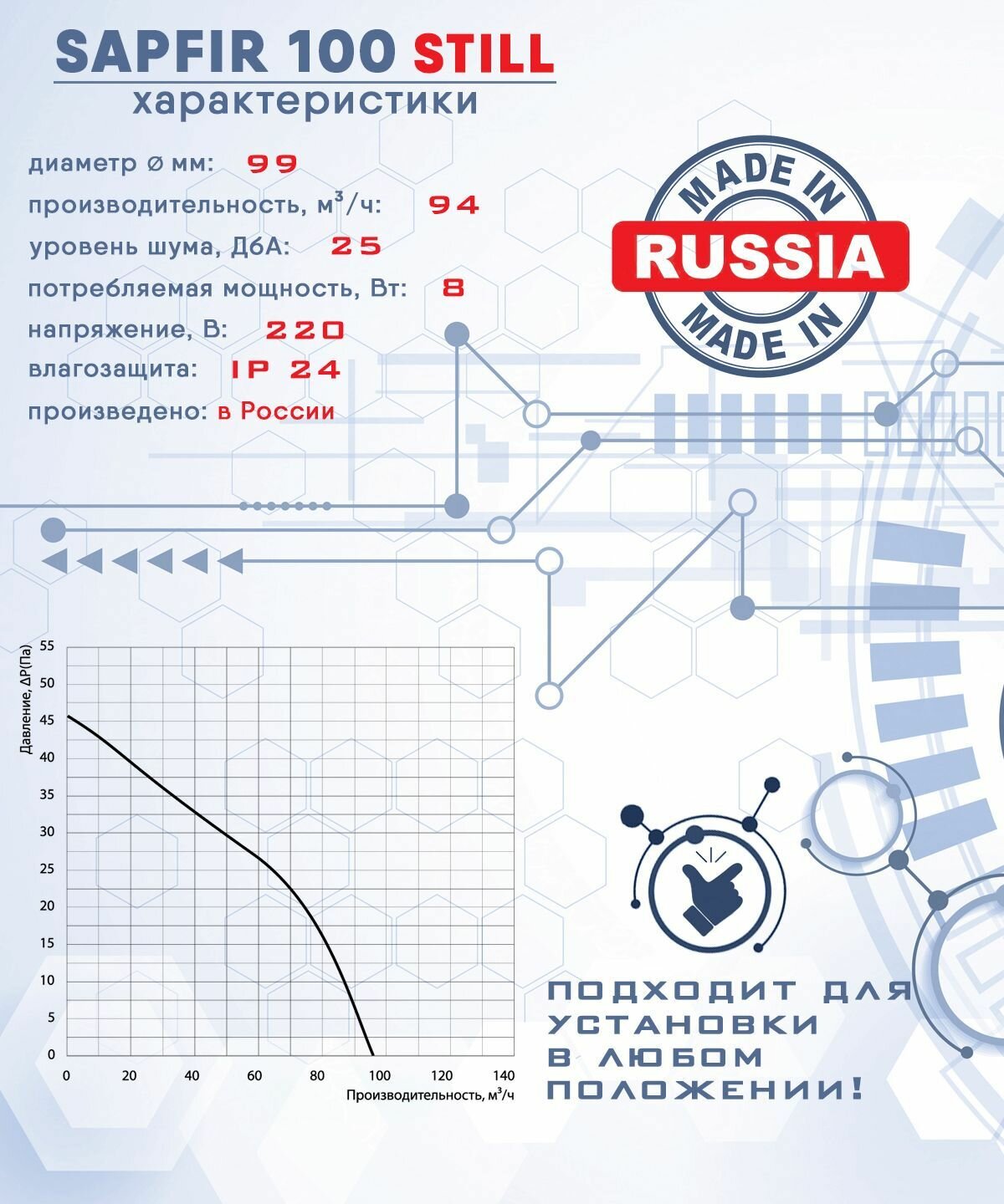 | Диаметр воздуховодов | 100 |