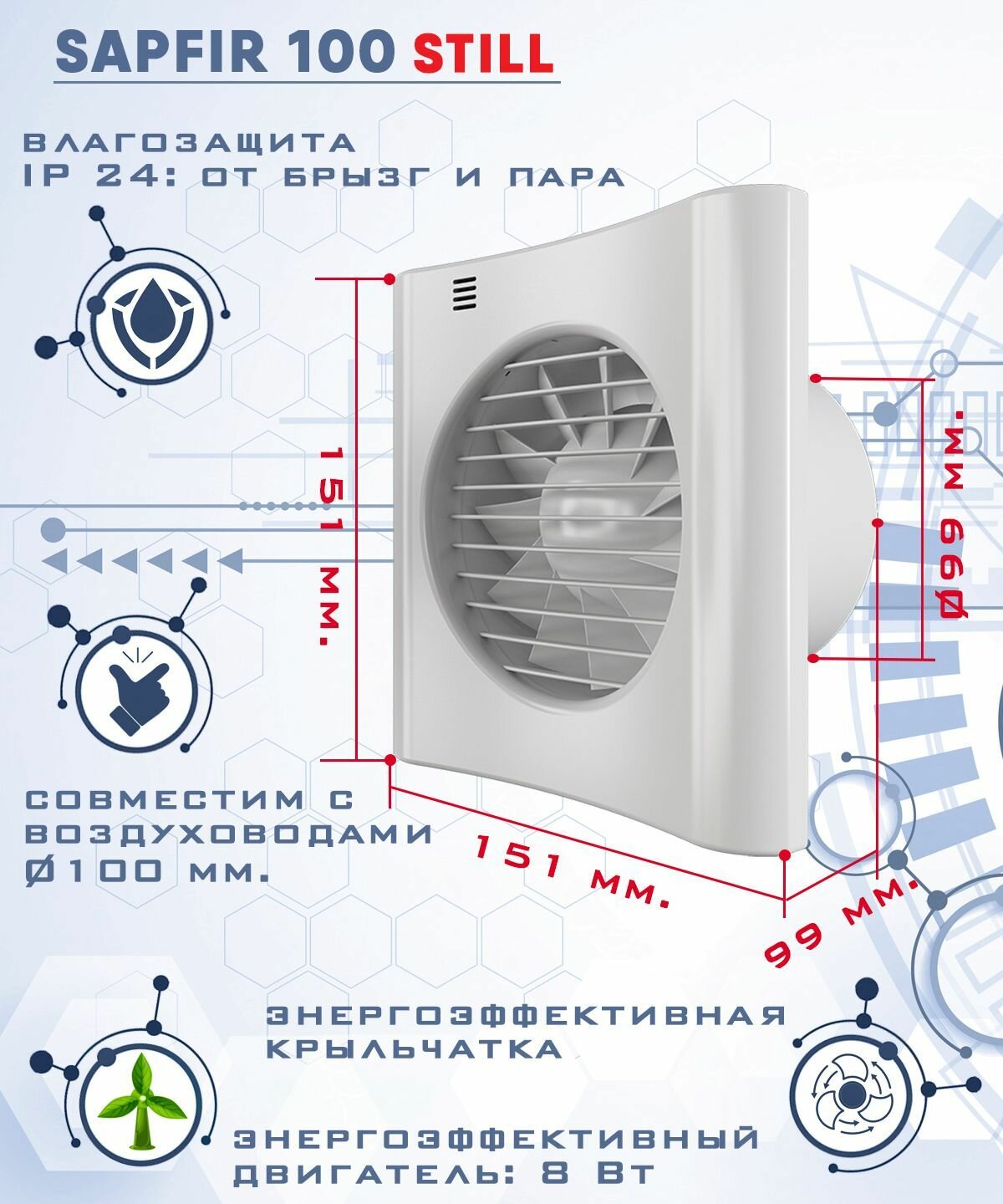 | Габариты ВхШхГ, мм | 151x151x99 |