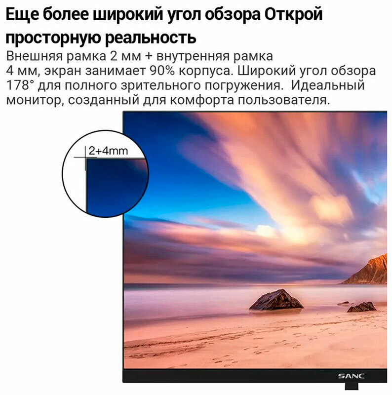 Внешняя рамка 2 мм + внутренняя рамка 4 мм, экран занимает 90% корпуса. Широкий угол обзора 178° для полного зрительного погружения. Идеальный монитор, созданный для комфорта пользователя.