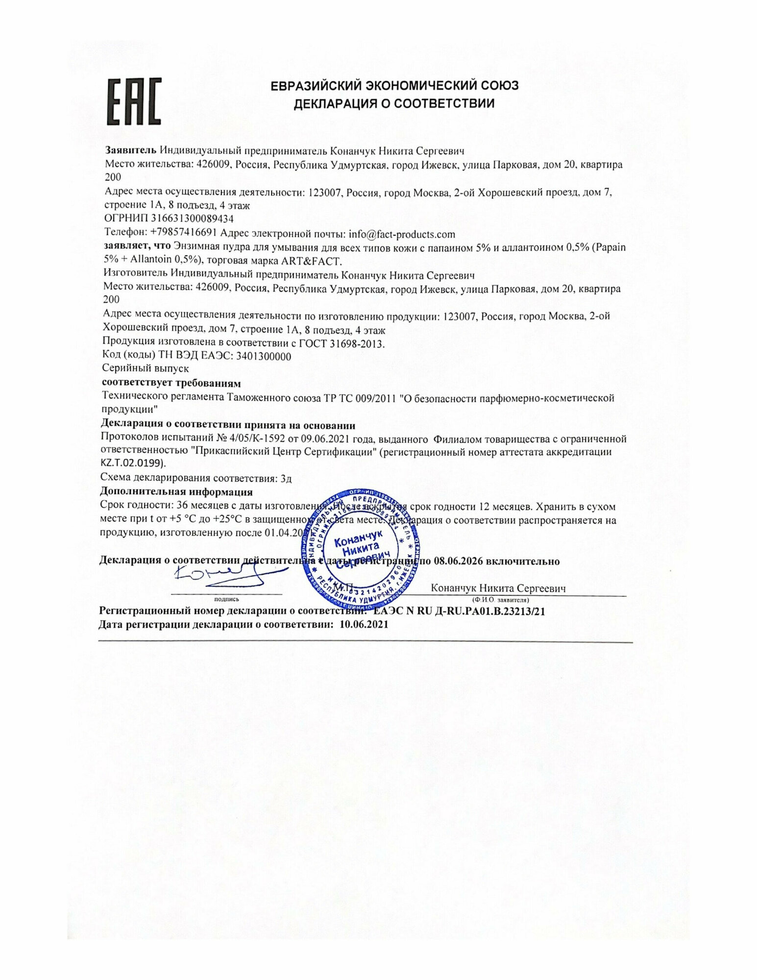 Россия ART&FACT (ЭХ99989443521)