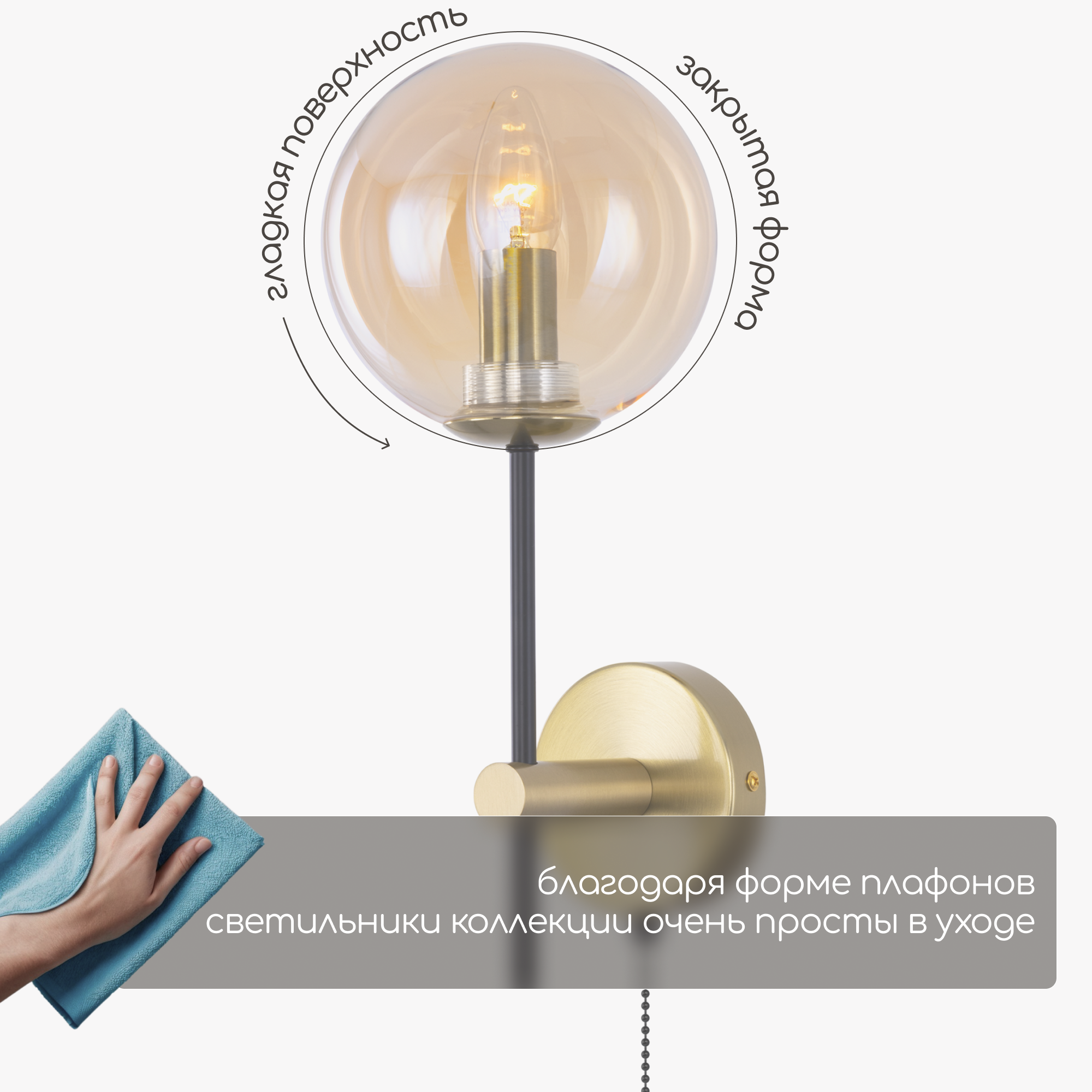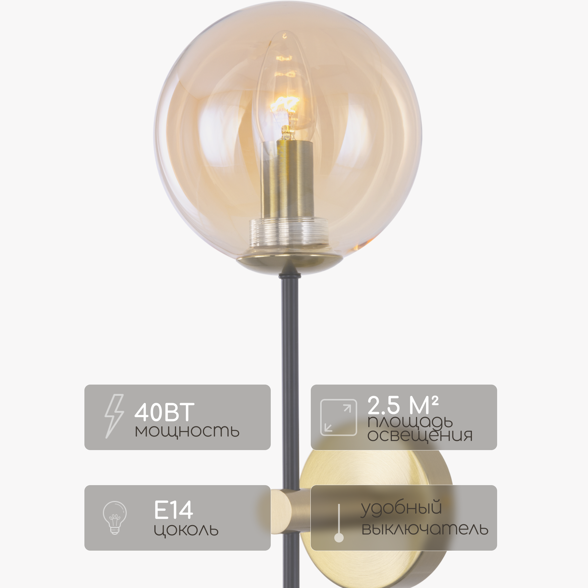Настенный светильник Citilux Лорен выполнен в современном стиле. Корпус металлический, цвет бронза с декоративными чёрными элементами. Плафоны в форме шара, изготовлены из прозрачного стекла светло-янтарного оттенка. В изделии используется лампа с цоколем Е14, форма колбы - свеча, максимальной мощностью для лампы накаливания 40Вт (в комплект не входит, приобретается отдельно). Тип крепления к стене – планка. Бра Citilux Лорен прекрасный вариант атмосферного освещения интерьеров, оформленных в теплых тонах.