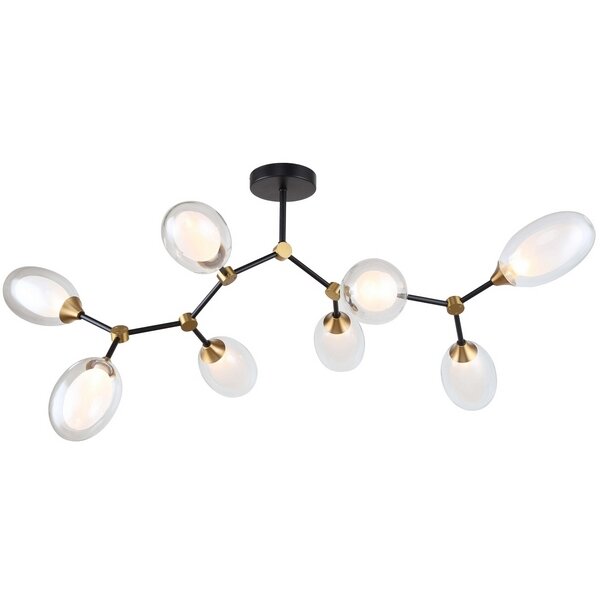 Арматура люстры выполнена из металла и стекла, а цвет арматуры – черный и латунный. Плафон изготовлен из стекла и имеет прозрачный вид, что придает светильнику легкость и воздушность.