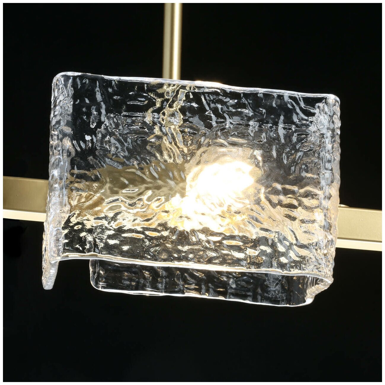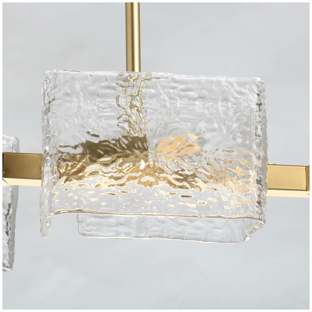 Металлическое основание светильника гальванизировано в цвет золота. Светильник декорирован плафонами из прозрачного фактурного стекла.