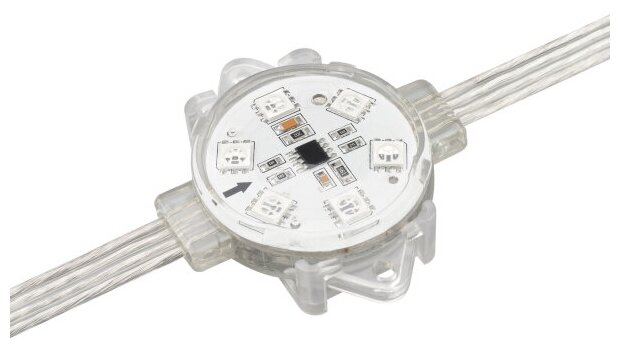 Управляемый светодиодный модуль SPI с держателем, RGB, микросхема ТМ 1914, напряжение 24 В, мощность 1.5 Вт, 6 светодиодов SMD 5060, угол 120°. Создание медиафасадов. Функция обхода битого пикселя. 20 шт на проводе, расстояние между центрами модулей 240 мм, длина провода между модулями 200 мм. IP 68. Размер Ø40×11.2 мм. Гарантия 3 года. В комплекте инжектор питания.; -30 до 55