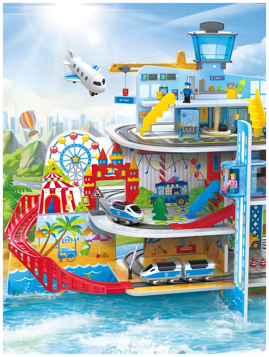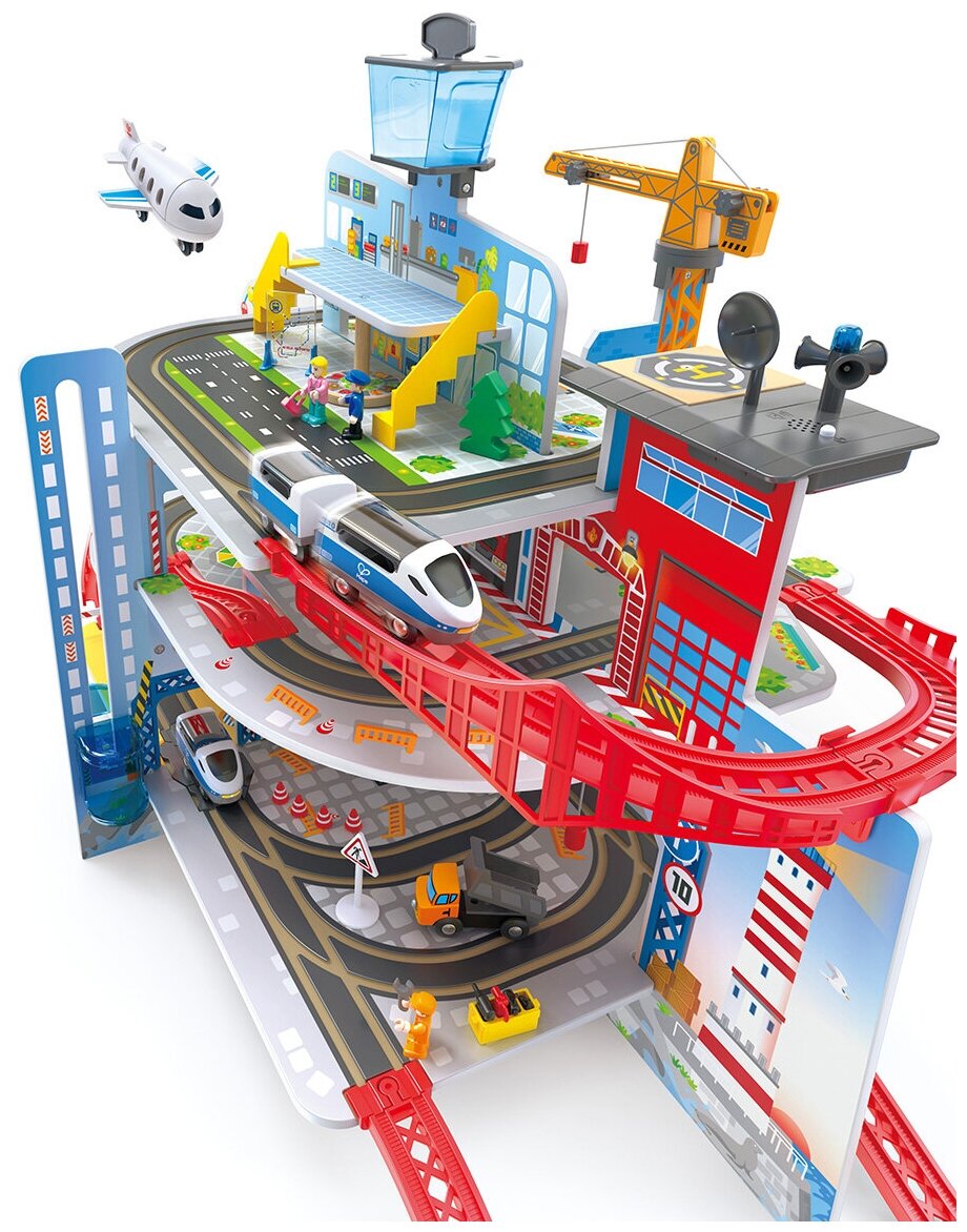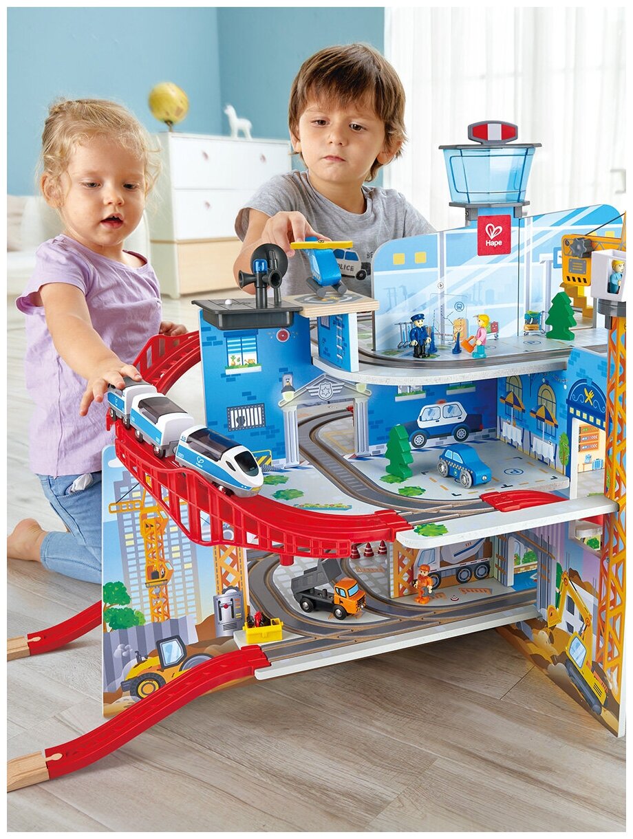 Железнодорожный набор Hape E3768_HP Железнодорожная станция Мега Сити