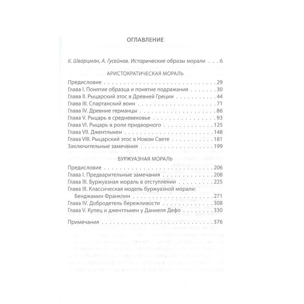 Книга состоит из двух наиболее важных в теоретическом отношении работ крупнейшего польского исследователя в области морали. Работа "Рыцарский этос и его разновидности" посвящена рассмотрению разновидностей и эволюции рыцарского этоса, начиная с античности и кончая новейшей историей. В "Буржуазной морали" обстоятельно анализируется становление и развитие норм и ценностей буржуазной морали и присущих ей личностных образцов поведения. В ходе рассмотрения исторических типов нравственности автор широко привлекает материал художественной литературы, публицистики, мемуаров, этнографических и социологических исследований, что делает возможным рекомендовать книгу не только специалистам по истории этики, но и широким кругам читателей.