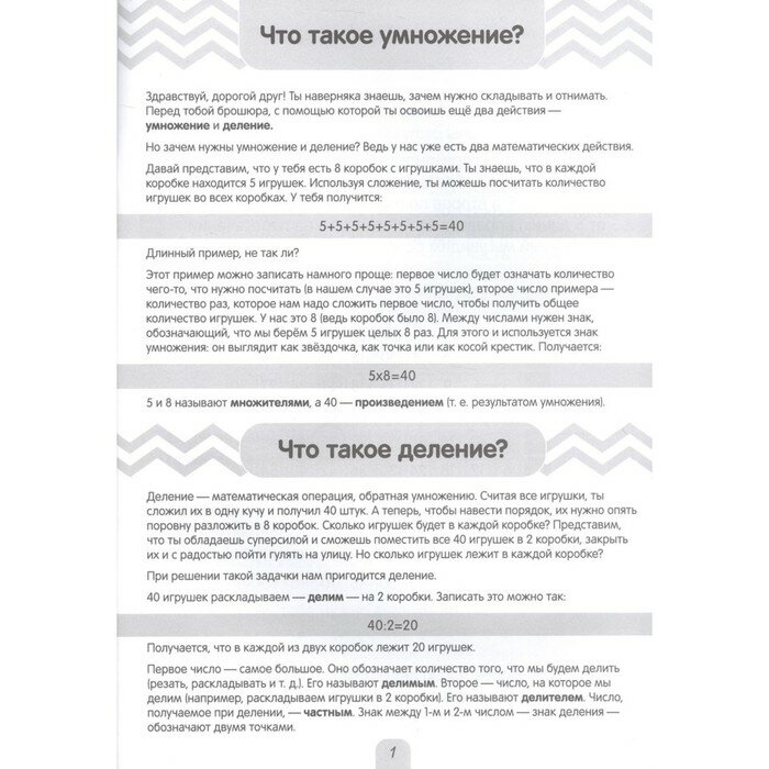 Устный счёт - ключевой навык в математике, от которого зависит скорость решения многих задач. Для того, чтобы закрепить это умение, мы создали серию тренажёров "Таблица умножения". Брошюры рассчитаны на возраст 8-10 лет. "Умный тренажёр" включает в себя подробную инструкцию по работе с таблицей Пифагора и правила умножения. На страницах тренажёра вы найдете разнообразные задания на умножение и деление для ребят, которые только начинают знакомиться с таблицей умножения.