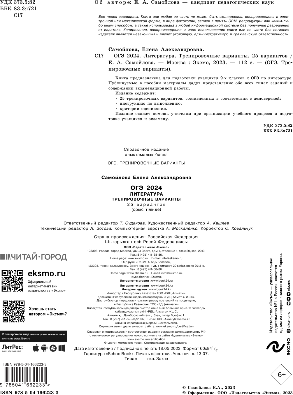 ОГЭ-2024. Литература. Тренировочные варианты. 25 вариантов (Самойлова Елена Александровна); ООО "Издательство "Эксмо", 2023