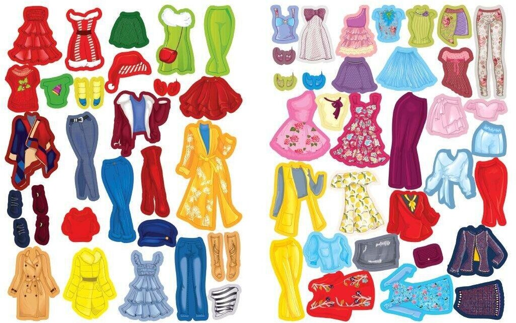 Красивый лукбук, девочки нарисованы на фоне различных ярких пейзажей, девчонки тоже разные. Думаю для ребёнка будет очень хорошим подарком, а тема путешествий актуальна к лету. Такая книжка развивает фантазию, воображение, чувство вкуса и на мой взгляд это очень хорошее времяпрепровождение для ребёнка. 32 страницы и 175 наклеек разнообразных нарядов, ребёнок точно не заскучает