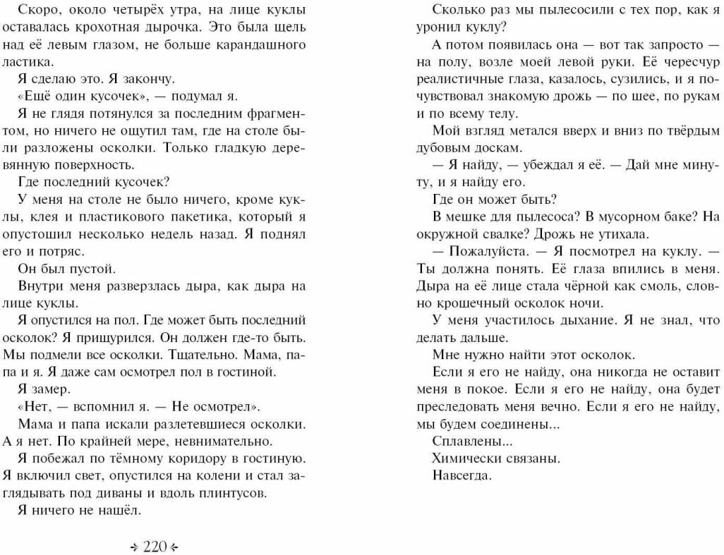 Вот это да! Мурашки по коже. Автор просто мастер создавать и нагнетать атмосферу. Прочитала на одном дыхании. Больше всего впечатлил рассказ про фарфоровую куклу и про девочку, которая съела мороженое в жаркий летний день, а потом не могла согреться. А еще история про снеговика, который не таял. Они все очень классные!