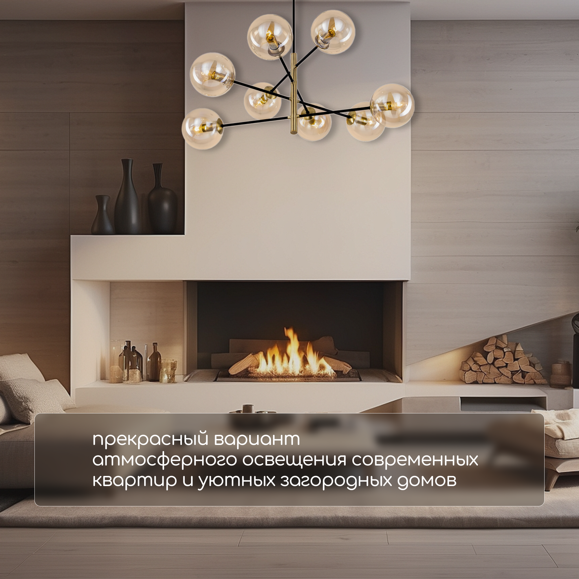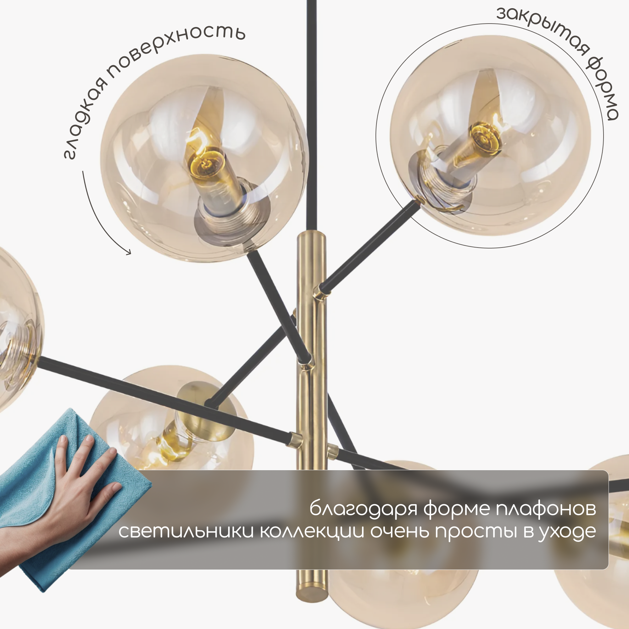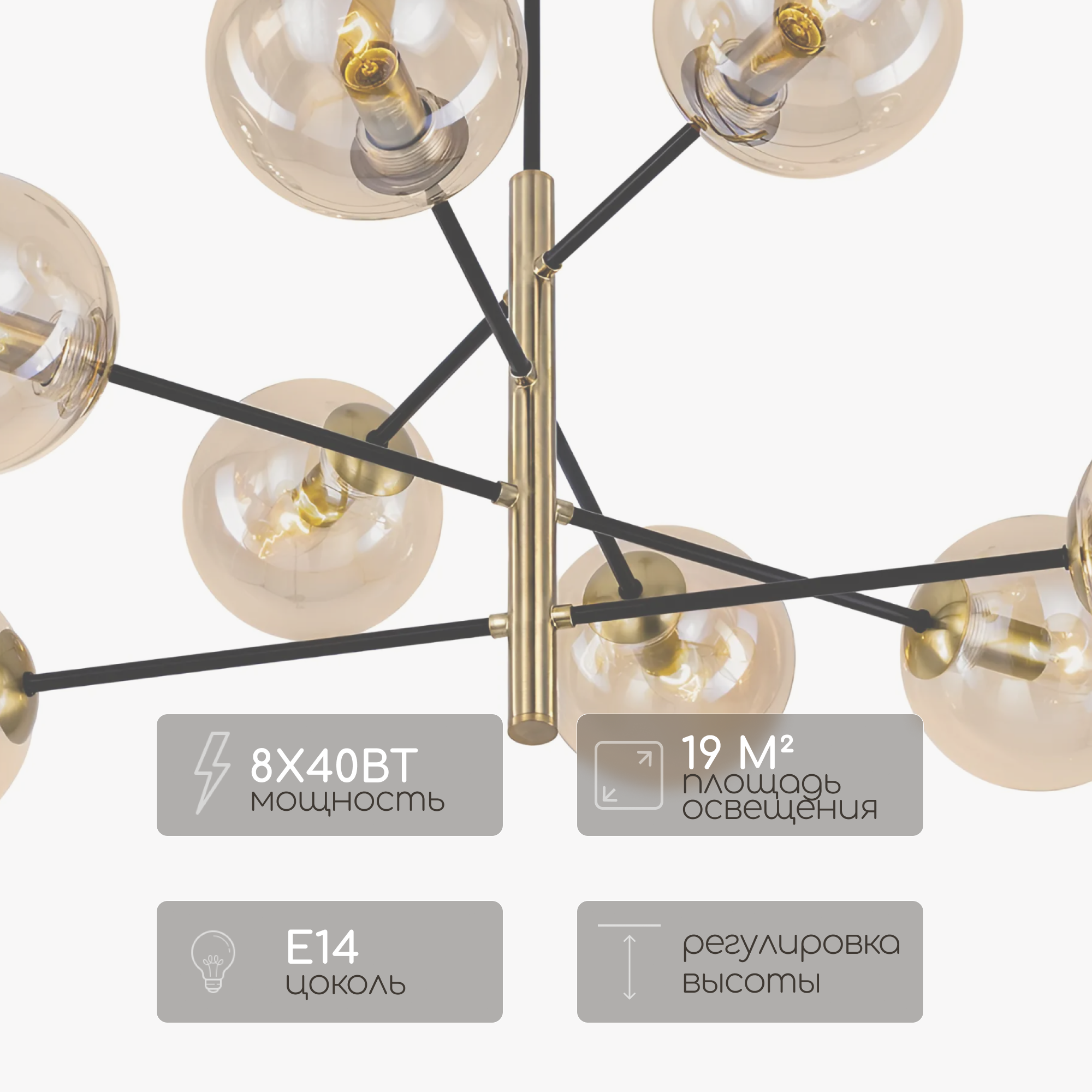 Стильная люстра Citilux Лорен для модных интерьеров, оформленных в стиле модерн или лофт. Корпус светильника металлический, цвет бронза с декоративными чёрными элементами. Основание круглое, рожки-штанги расположены параллельно потолку. Плафоны в форме шара, изготовлены из прозрачного стекла светло-янтарного оттенка. В изделии используются лампы с цоколем Е14, форма колбы свеча, максимальной мощностью для ламп накаливания 40 Вт. Диаметр светильника 85см, высота устанавливается перед монтажом, два варианта - 52см или 70см. Подходит для всех типов потолков, в том числе натяжных, тип крепления – планка. Люстра на штанге Citilux Лорен прекрасный вариант атмосферного освещения современных квартир и уютных загородных домов.