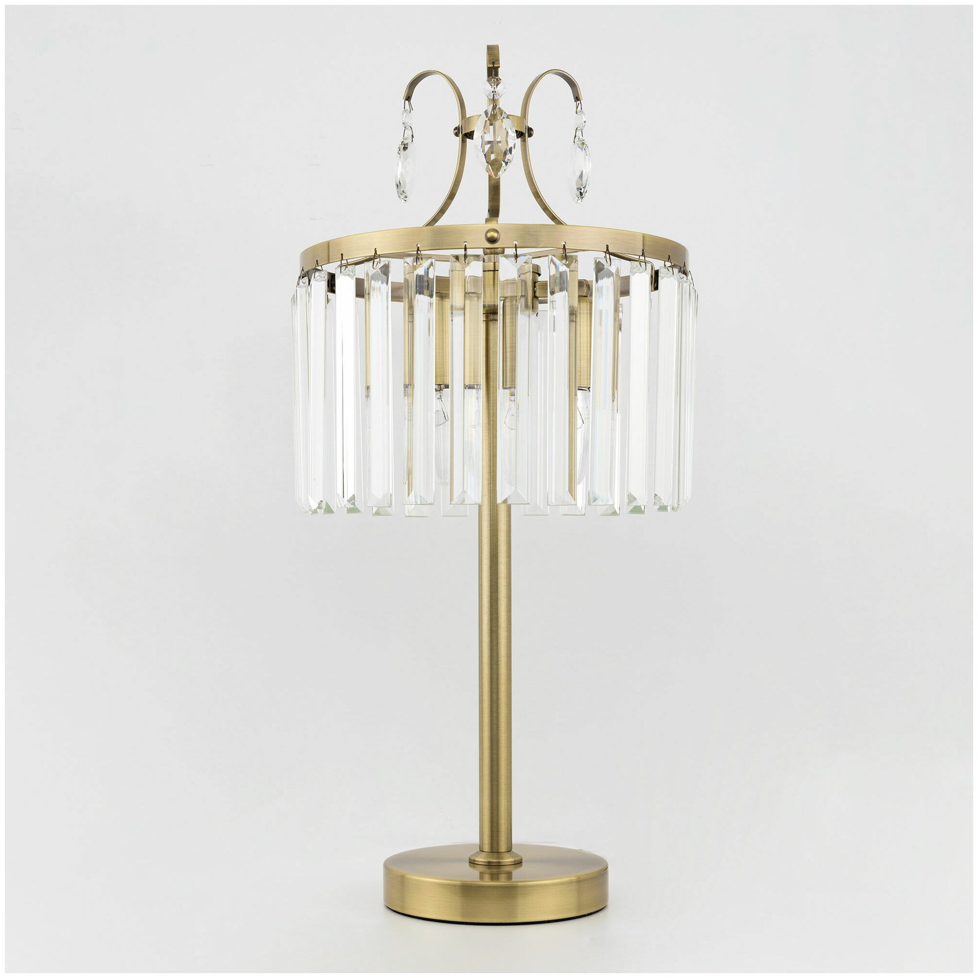 Настольная лампа Citilux Инга с шикарными хрустальными подвесками. Корпус светильника металлический, цвет бронза. В изделии используются 3 лампы с цоколем Е14, максимальной мощностью для ламп накаливания 60Вт (в комплект не входят, приобретаются отдельно). Высота светильника 56см, диаметр хрустального абажура 27см. Длина сетевого шнура 170см, выключатель находится на расстоянии 20см от основания. Светильник можно разместить на камине, столе или прикроватной тумбе. Он отлично подойдет для освещения зала, гостиной, спальни или кабинета, оформленных в классическом или современном стиле.