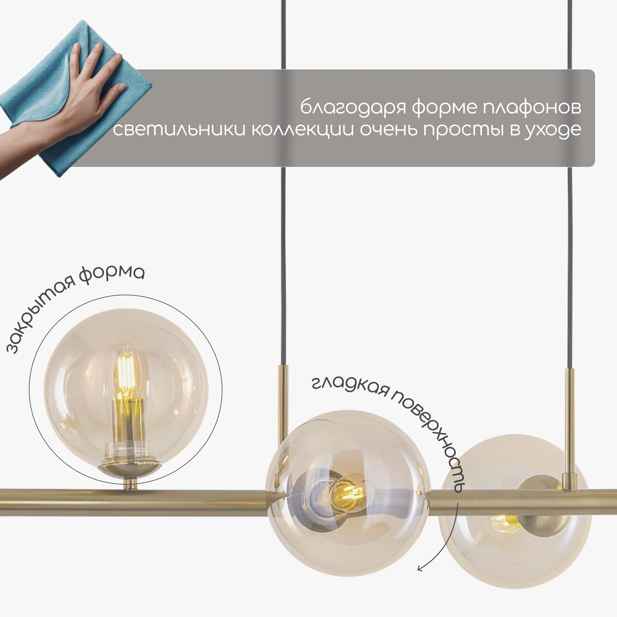 Стильная подвесная люстра Citilux Лорен для модных интерьеров, оформленных в стиле модерн или лофт. Корпус светильника металлический, цвет бронза. Плафоны в форме шара, изготовлены из прозрачного стекла светло-янтарного оттенка. В изделии используются лампы с цоколем Е14, форма колбы свеча, максимальной мощностью для ламп накаливания 40 Вт. Длина светильника 111см, высота легко регулируется при установке, в диапазоне от 27см до 1,2м. Подходит для всех типов потолков, в том числе натяжных, тип крепления – планка. Люстра Citilux Лорен прекрасный вариант освещения зоны стола или кухонного острова в современных квартирах и уютных загородных домах.