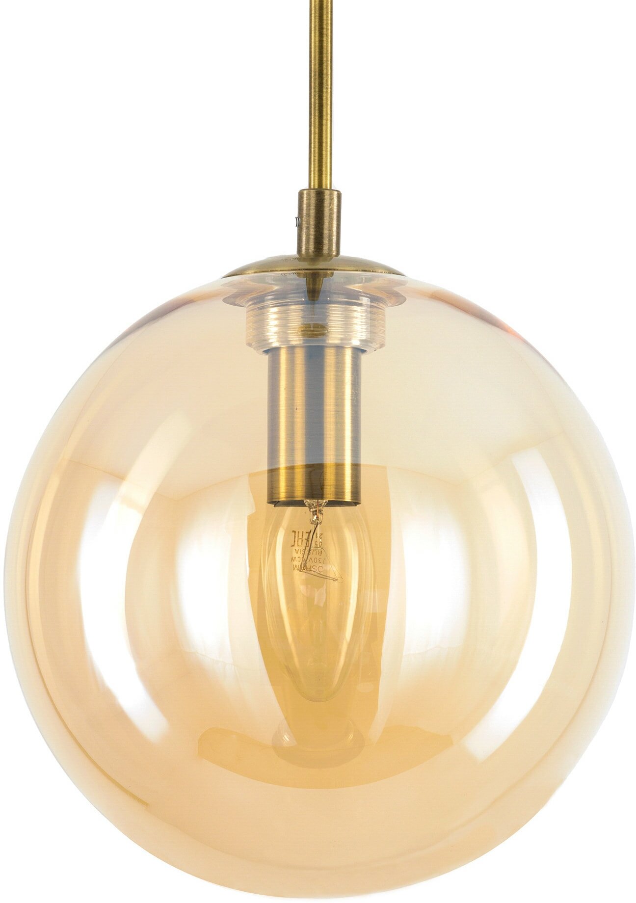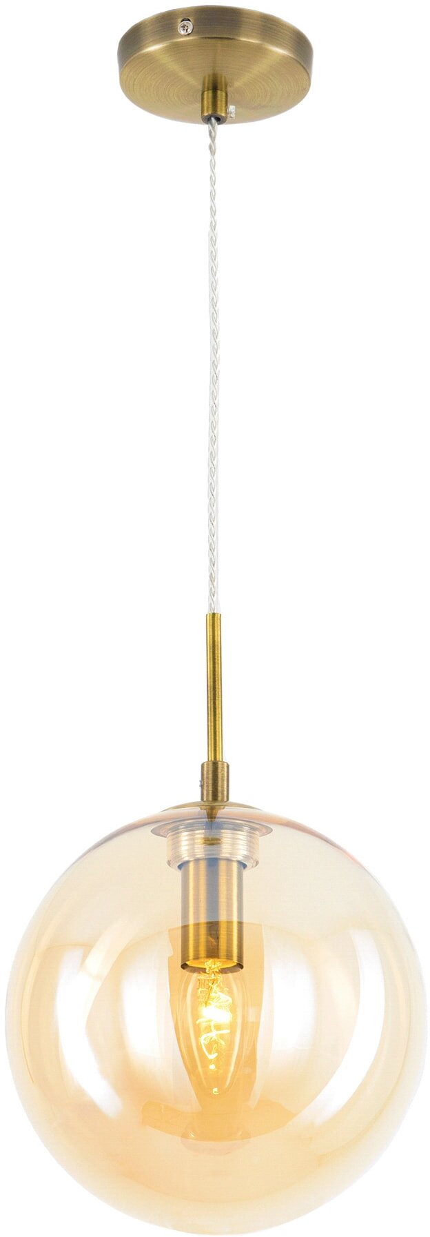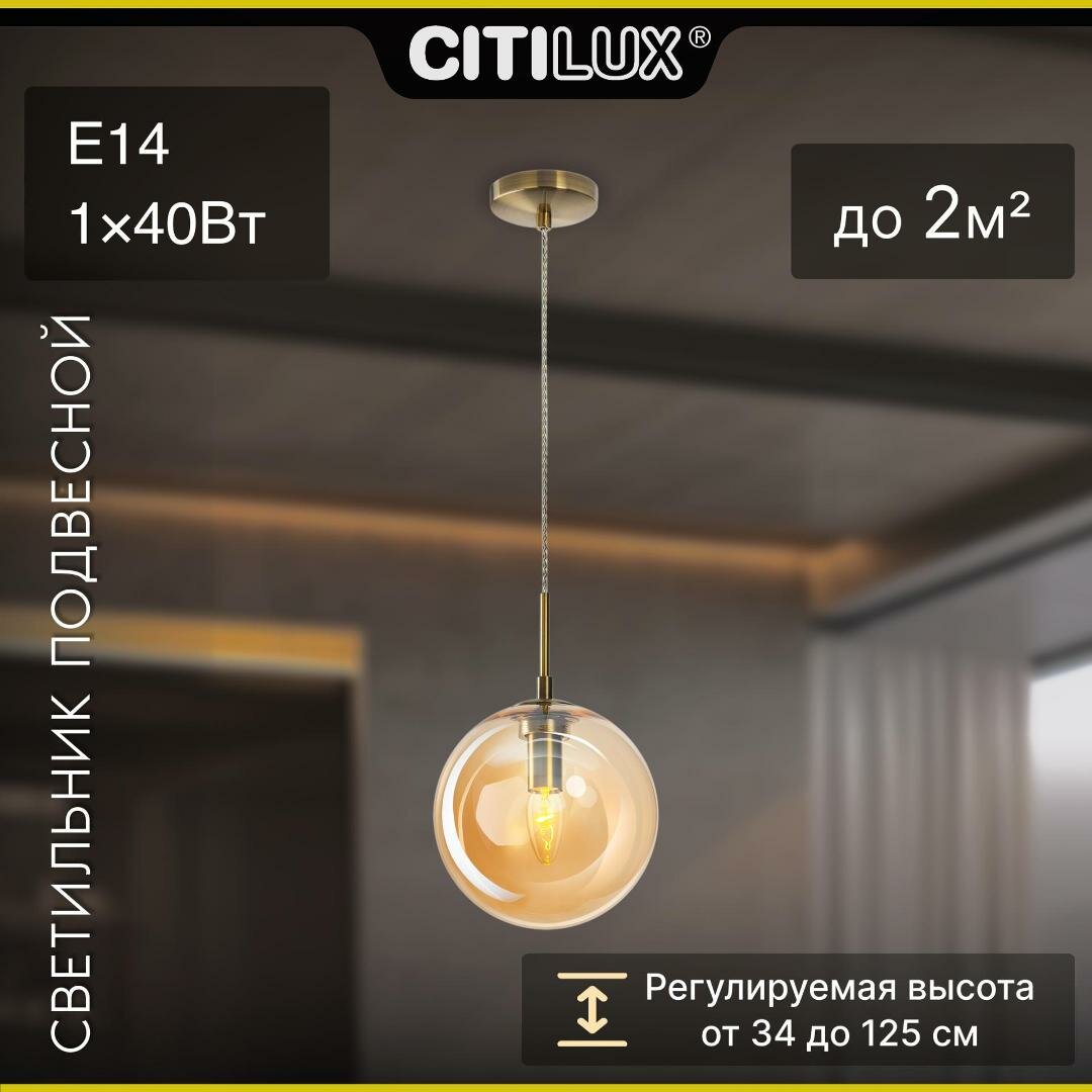 Подвесной светильник Citilux Томми выполнен в современном стиле. Основание металлическое, цвет бронза. Плафон в форме шара, изготовлен из прозрачного стекла, светло-янтарного оттенка, диаметр 20см. В светильнике используется 1 лампа с цоколем Е14, форма колбы свеча, максимальной мощностью для ламп накаливания 40Вт (лампа в комплект не входит, приобретается отдельно), осветит до 2м². Высота легко регулируется при установке, в диапазоне от 34см до 1,25м. Модель подходит для всех типов потолков, в том числе натяжных. Тип крепления – планка. Подвесной светильник Citilux Томми великолепно выглядит над прикроватной тумбочкой, в зоне стола или над стойкой бара.