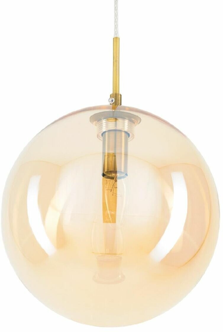 Подвес Citilux Томми с одним плафоном выполнен в современном стиле. Основание светильника металлическое, круглой формы, цвет бронза. Плафон в форме шара, изготовлен из прозрачного стекла, светло-янтарного оттенка. В изделии используется 1 лампа с цоколем Е14 максимальной мощностью для ламп накаливания 40Вт (лампа в комплект не входит, приобретается отдельно). Высота светильника регулируется в диапазоне от 34см до 1,25м, диаметр плафона 25см. Модель подходит для всех типов потолков, в том числе натяжных, тип крепления – планка. Подвесной светильник Citilux Томми прекрасный вариант для основного и дополнительного освещения комнат с высокими или низкими потолками, традиционно используется для освещения зоны стола и стойки бара.