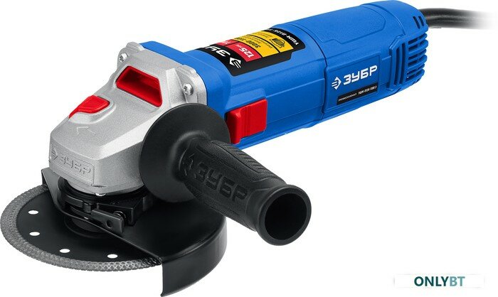Угловая шлифмашина Зубр УШМ-П125-1100 Э, мощность 1100Вт, диаметр шлифовального круга 125мм, скорость вращения до 11000об/мин